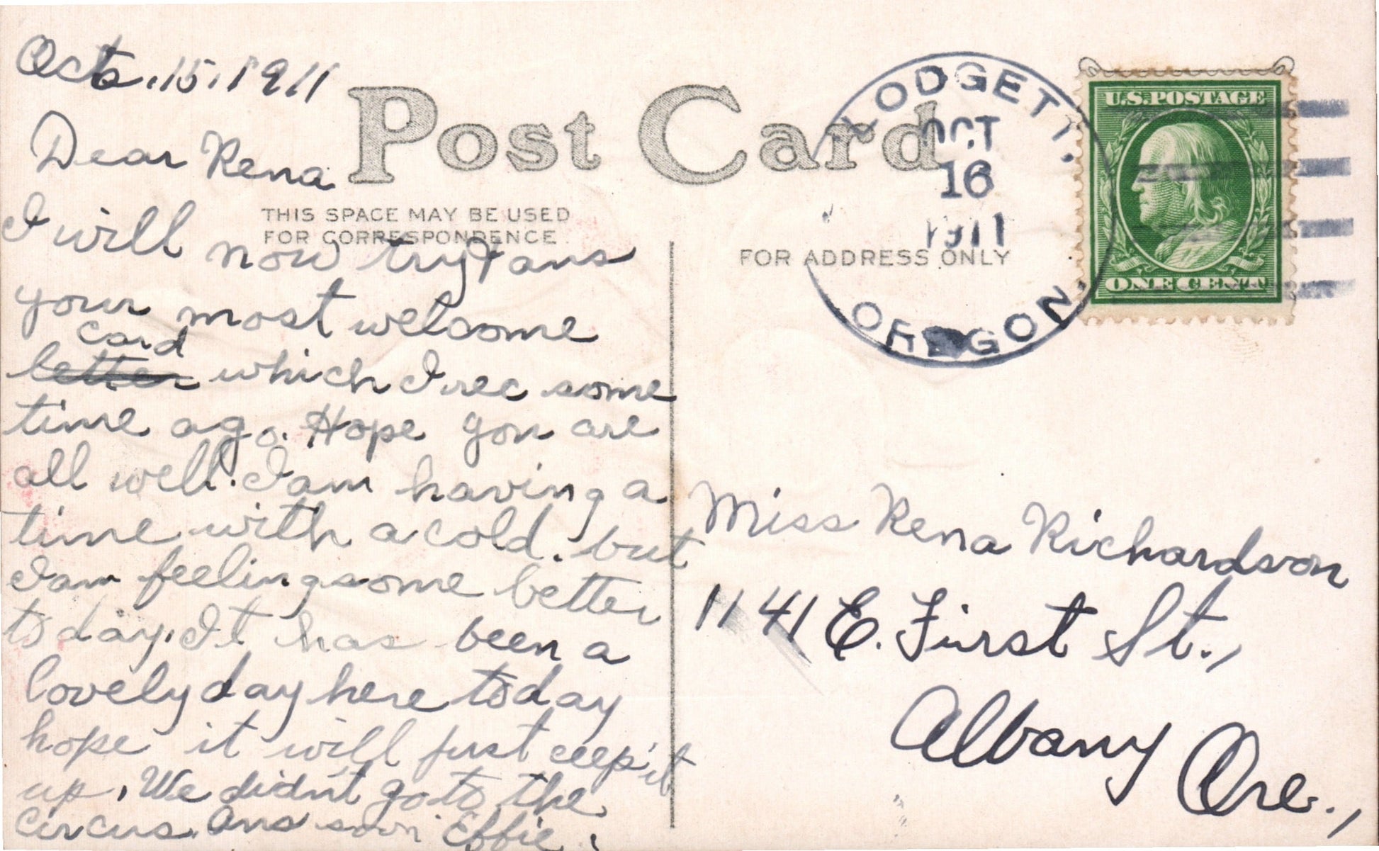 Philomath 1909 4-bar on post card