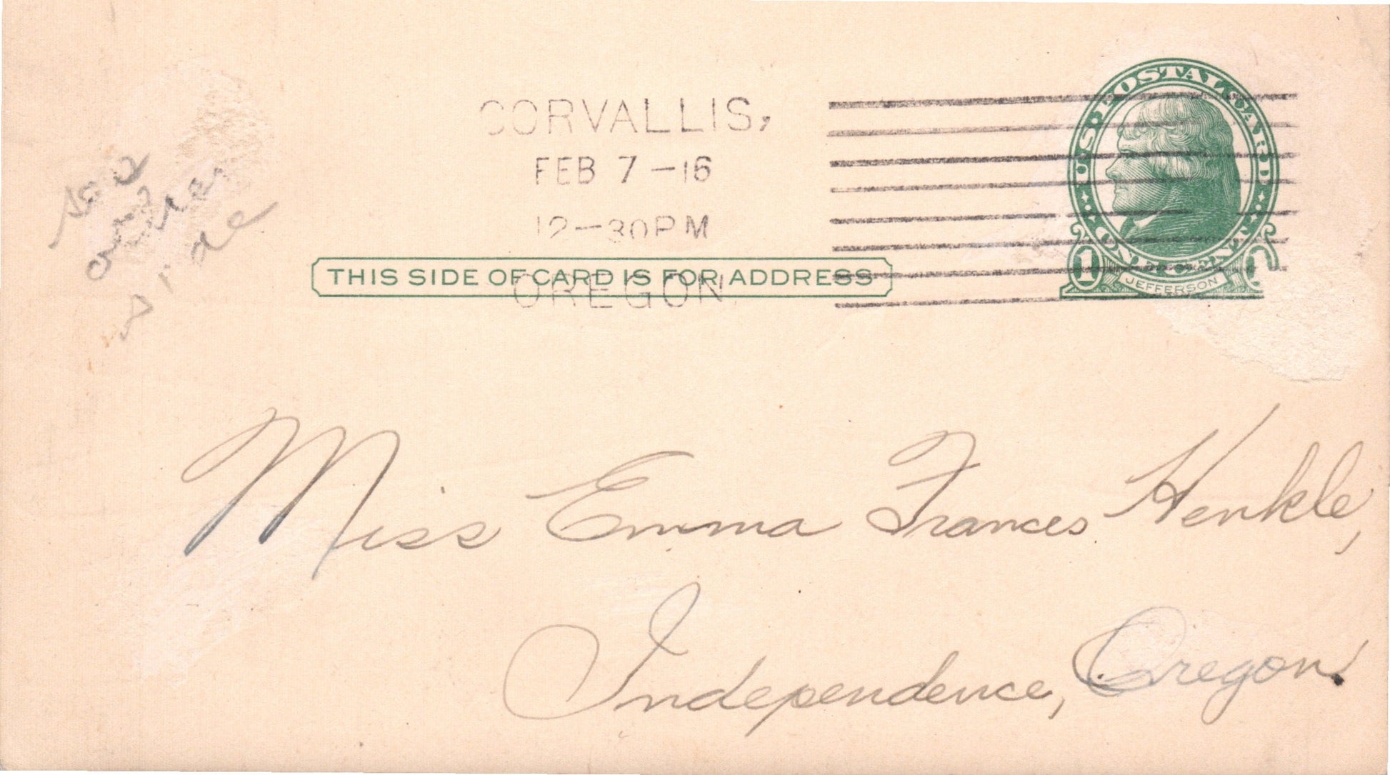 Corvallis 1903 duplex on cover; 19?? Flag cancel on post card; 1916 straight-line machine cancel on Postal Card; 1925 machine cancel on cover, includes 2 letters