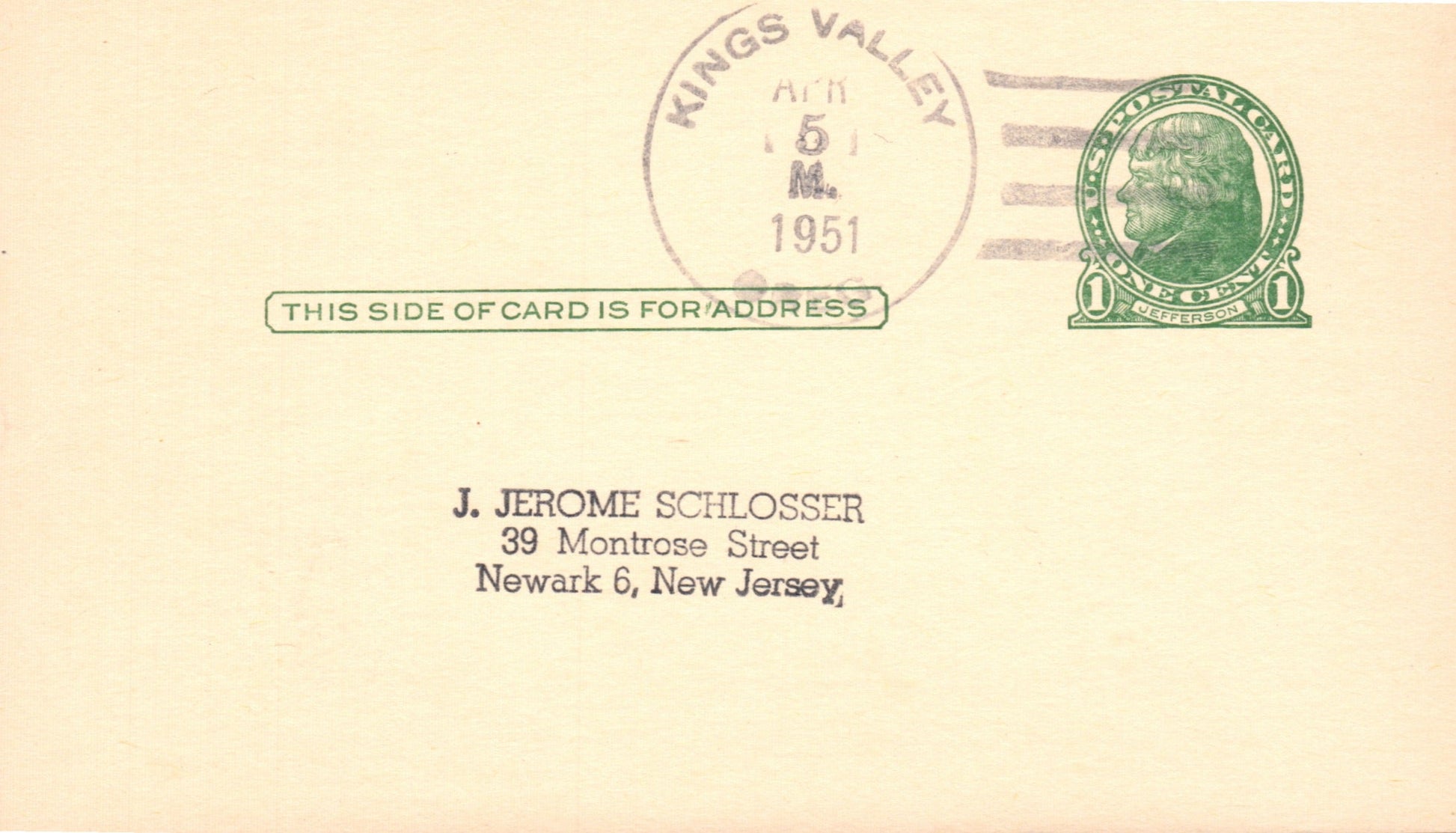 Kings Valley (1844-1974) 1910 4-bar on post card; 1951 4-bar on Postal Card