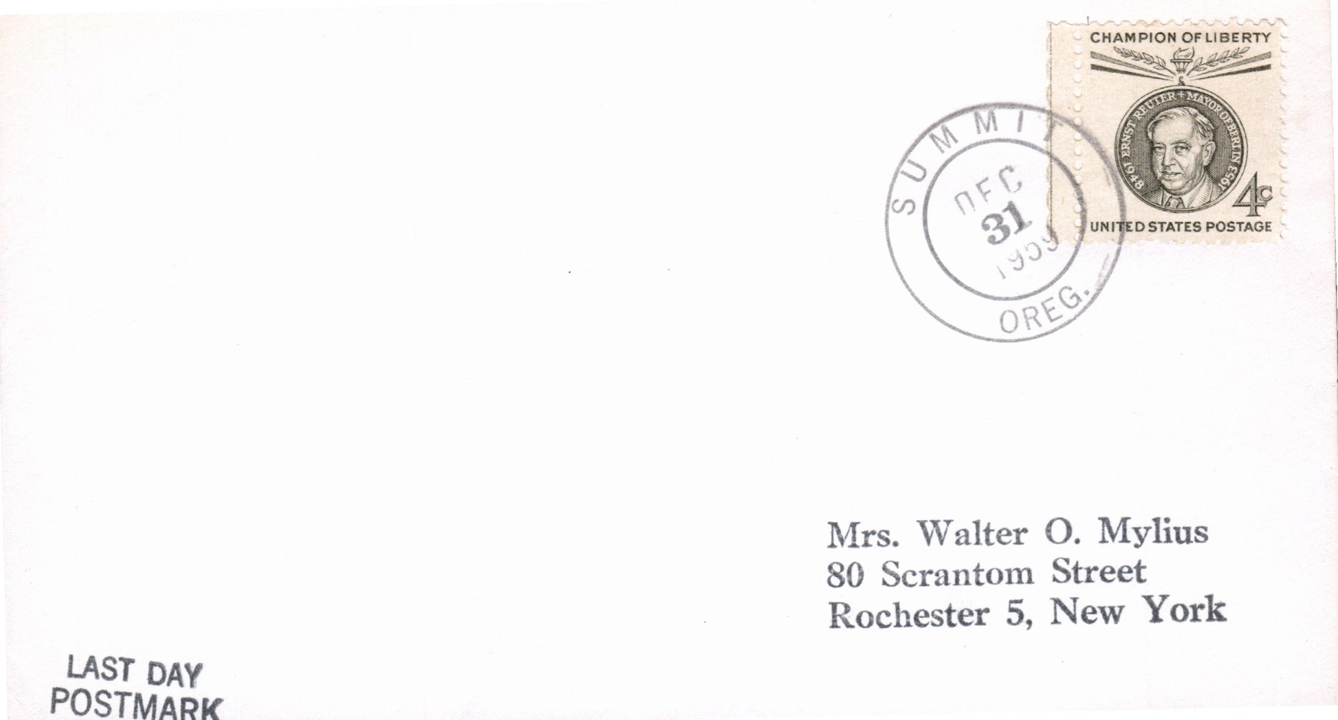 Summit (1868-1959) 1951 4-bar on Postal Card; 1959 round dater on LD cover