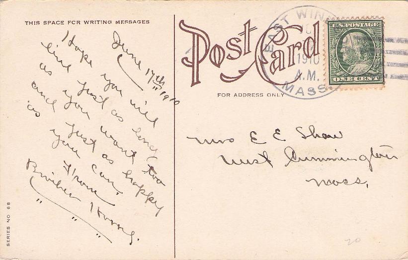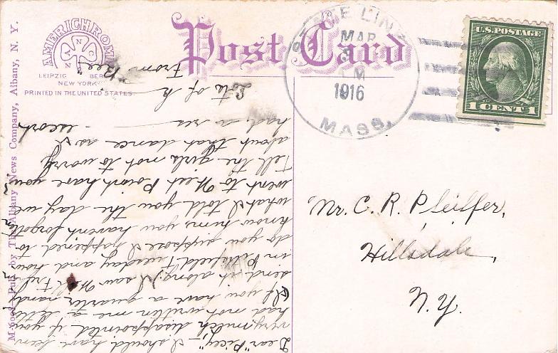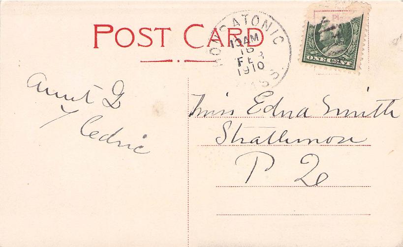 - Housatonic 1910 duplex on post card, stamp torn