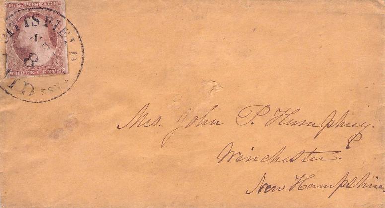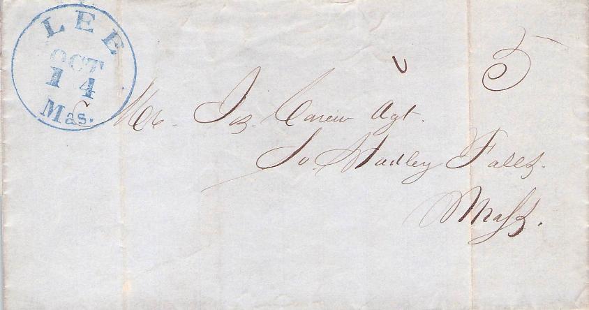- Lee 1848 stampless cover, 5¢ rate to South Hadley Falls