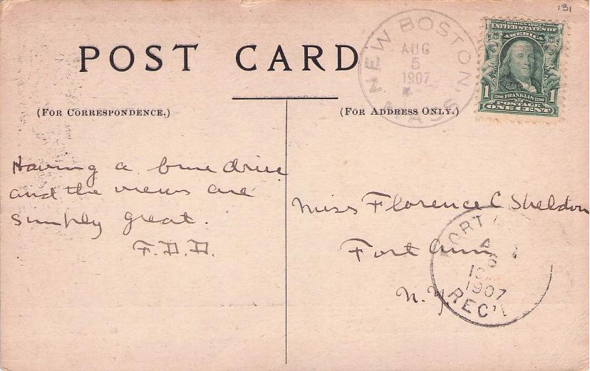 - New Boston (1825-1956) 1907 Doane on post card, also Fort Ann NY Rec’d; 1940 4-bar on cover