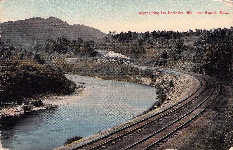 - Russell Post card: “Approaching the Berkshire Hills, near Russell” shows tracks & train [1912]