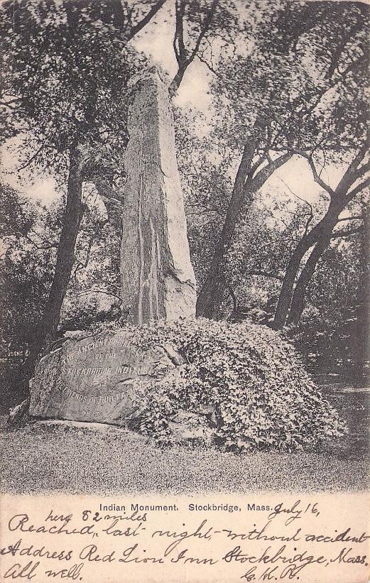 - Stockbridge Post cards: Red Lion Inn [chrome]“View South from Prospect Hill” [B&W, c.1910]; Stockbridge Historical Society [chrome]; Indian Monument [B&W, 1907]
