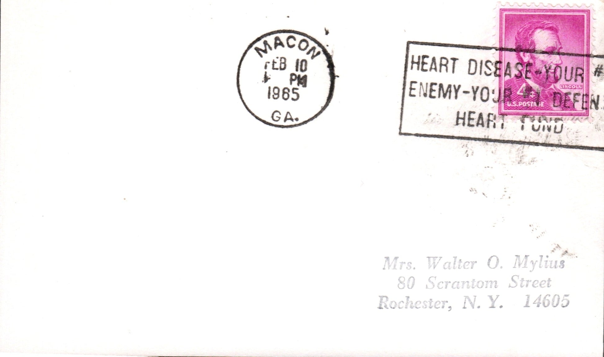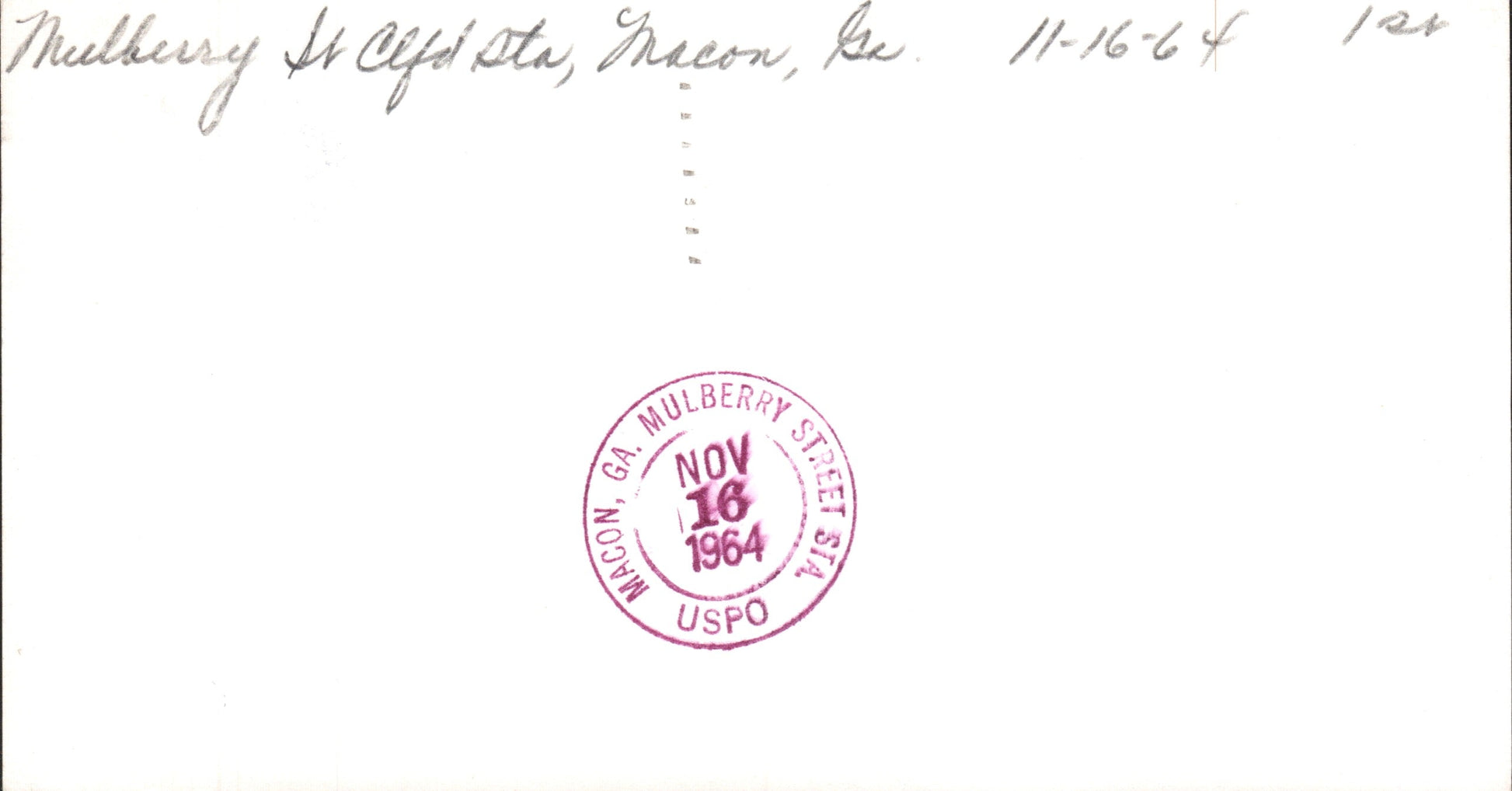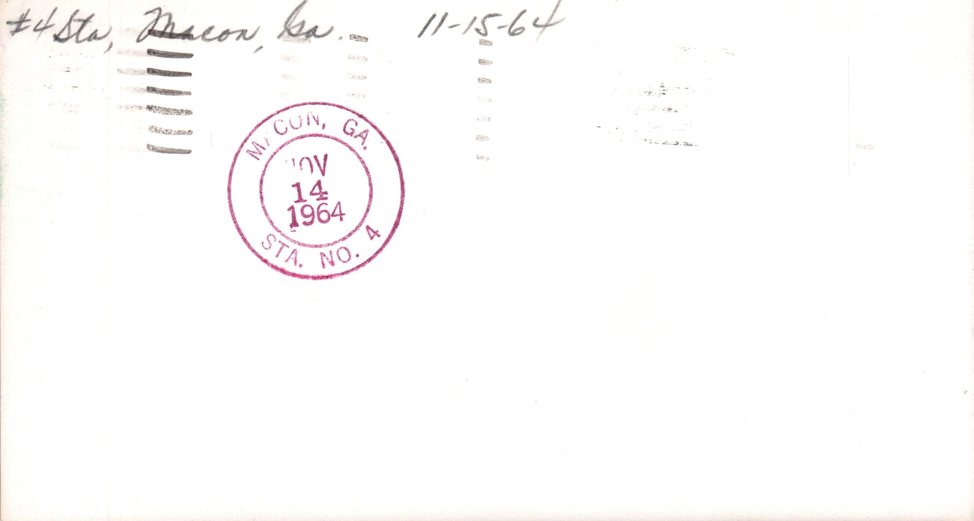 Macon Sta. No. 4 1964 round dater on back of cover-sized card