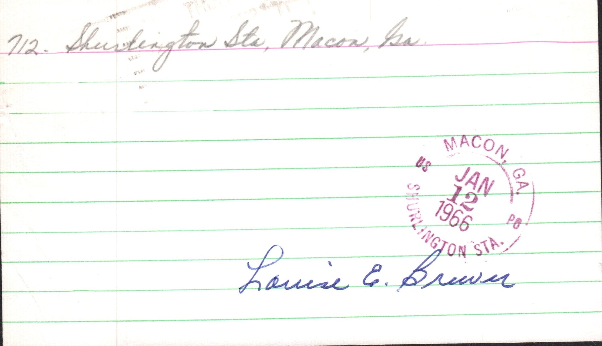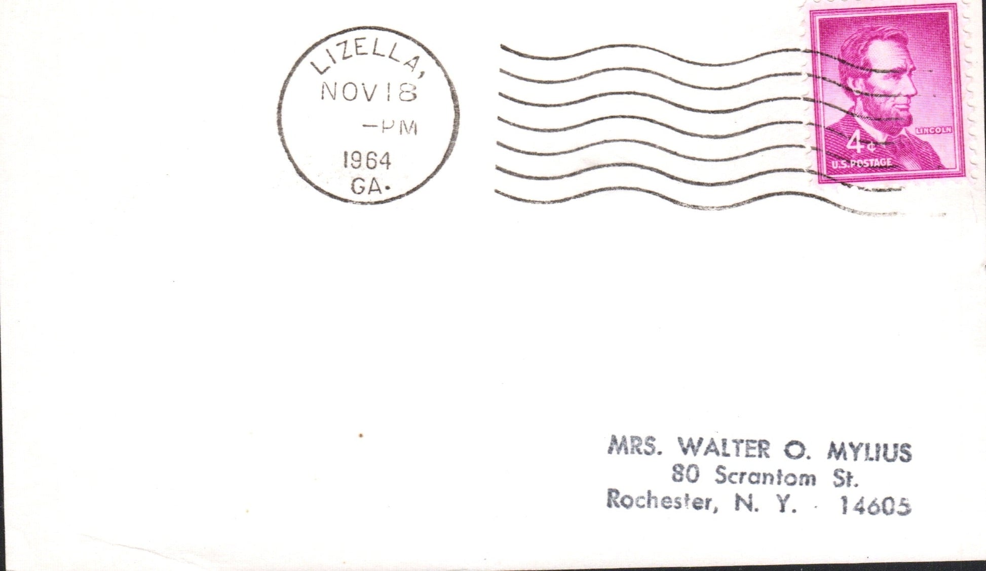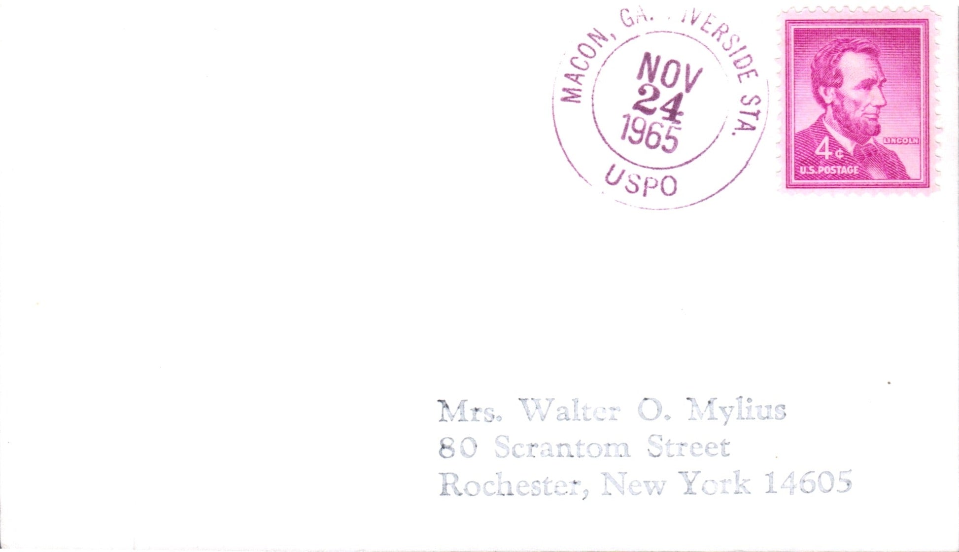 Macon Sta. No. 4 1964 round dater on back of cover-sized card