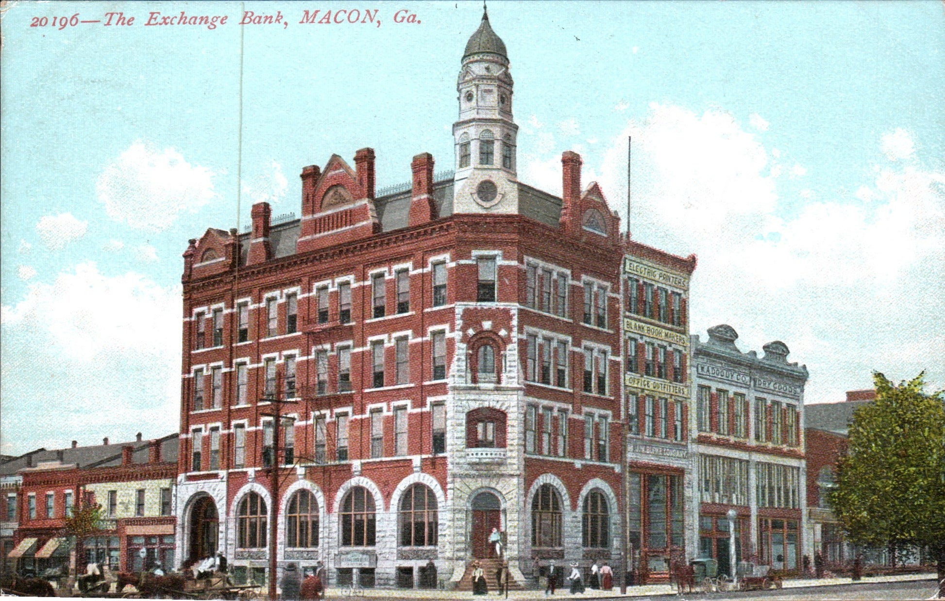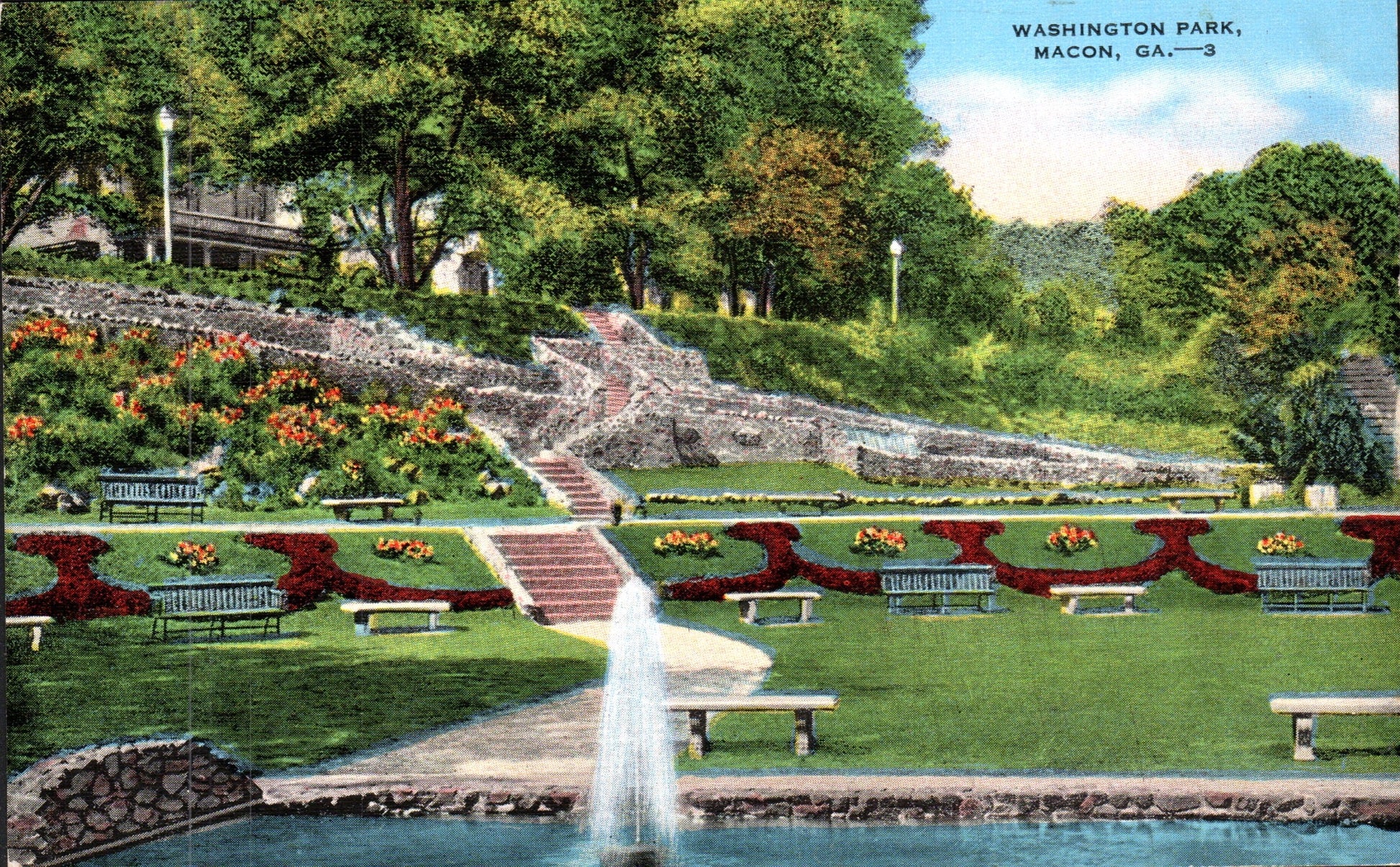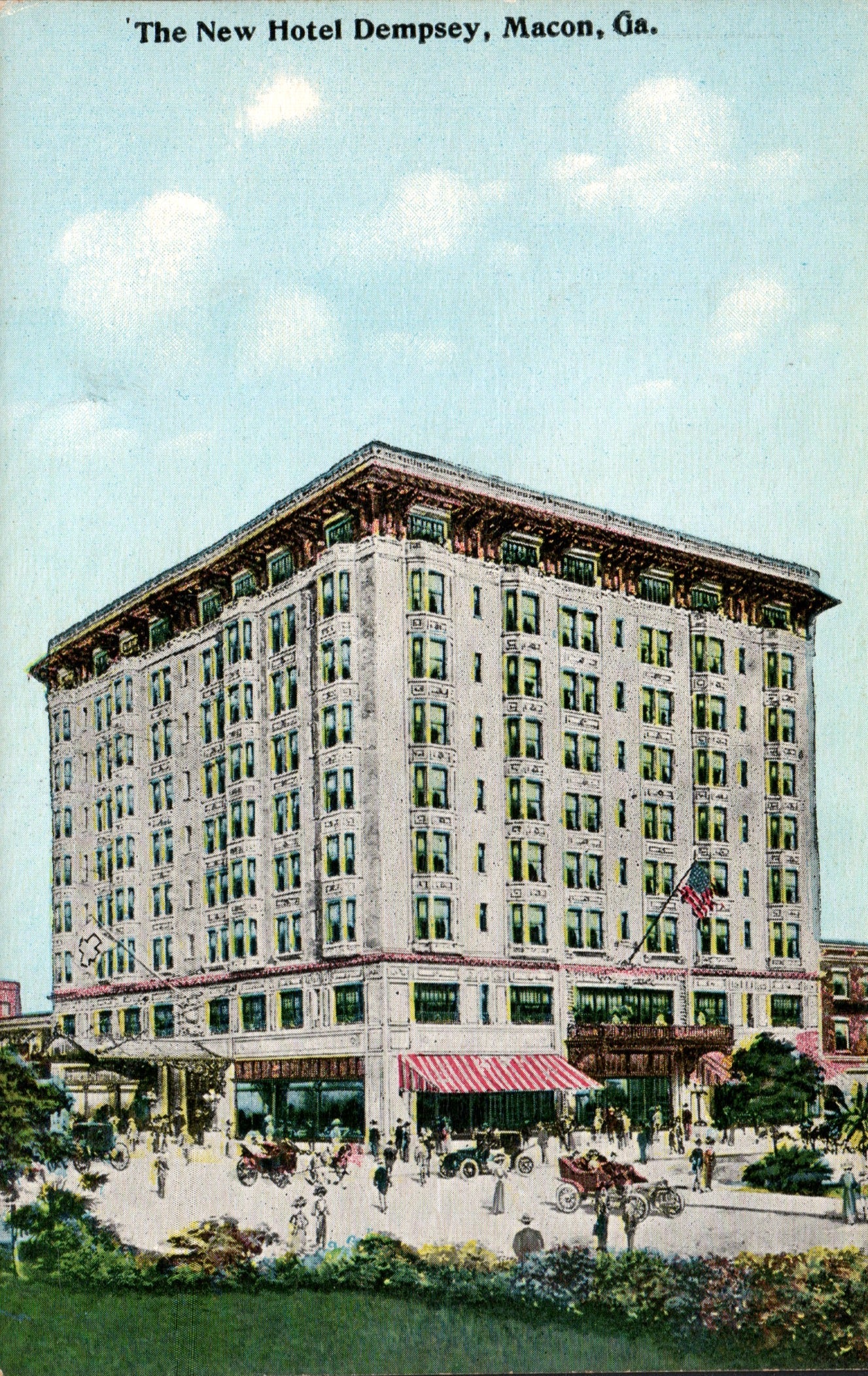 Post cards: Downtown, aerial view [linen]; Third Street Park and downtown buildings [linen, 1945]; Exchange Bank [c.1910]; Bankers Insurance bldg. [linen]; “New Hotel Dempsey” [c.1910]; Ambassador Motel, aerial view [chrome]; Motel Alpine swimming pool [chrome]; Drill’s Court [linen]; Magnolia Court [2 chrome views]; Post Office [1920s?]; Court house [linen]; City Hall [linen]; Mercer Univ. Administration bldg. [chrome]; Greater Wesleyan College [linen, scuff marks]; St. Paul’s Church [c.1910]; Hay House [chrome]; “Old Cannon Ball House” [chrome]; Wesleyan Conservatory [linen]; Washington Park [linen]; “View at Coleman Hill” [linen]; Baconsfield Park [linen]; “Ponds in Baconsfield Park” [linen]