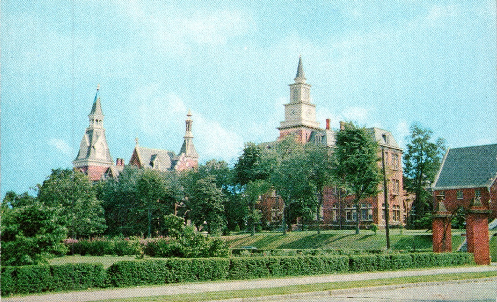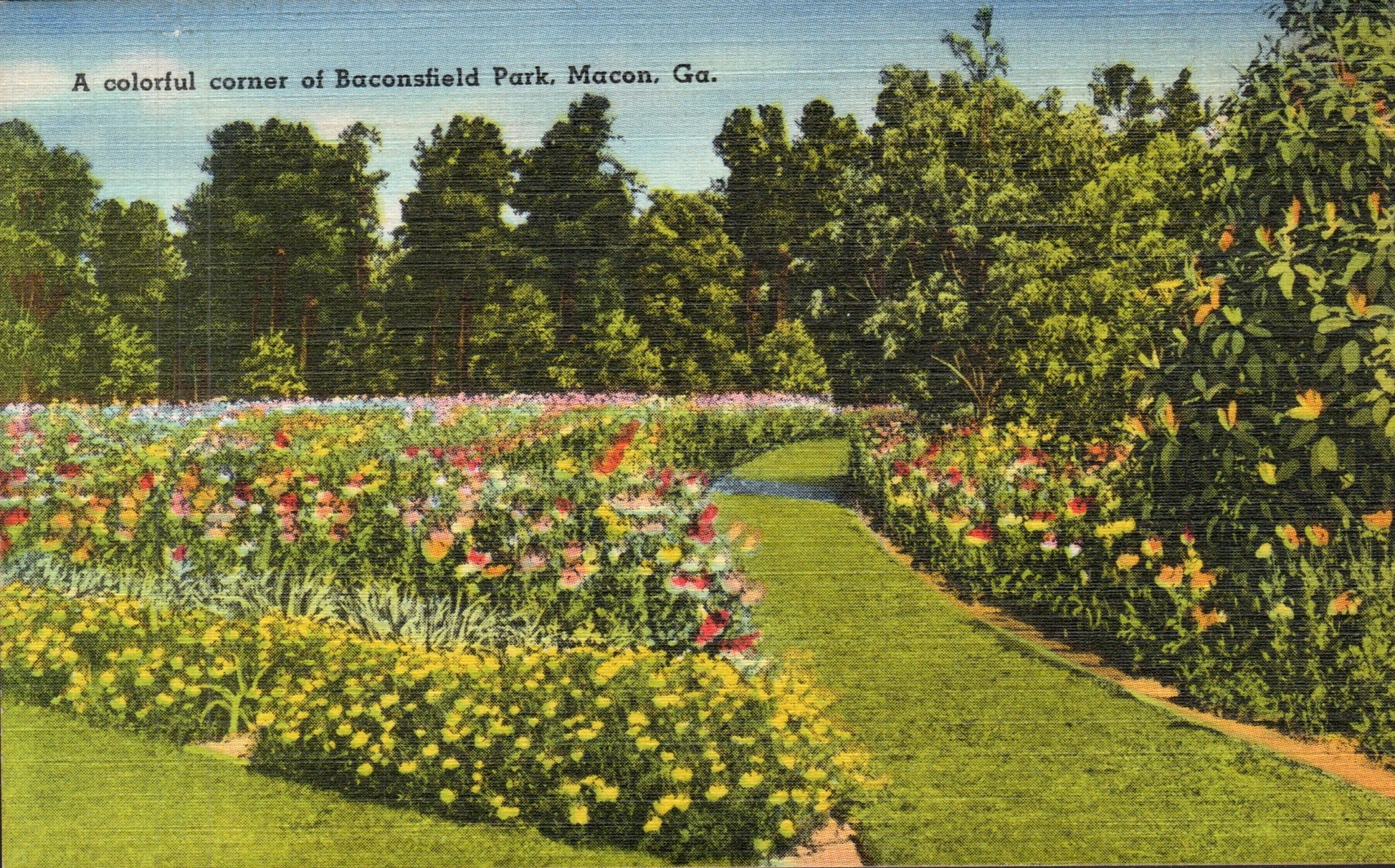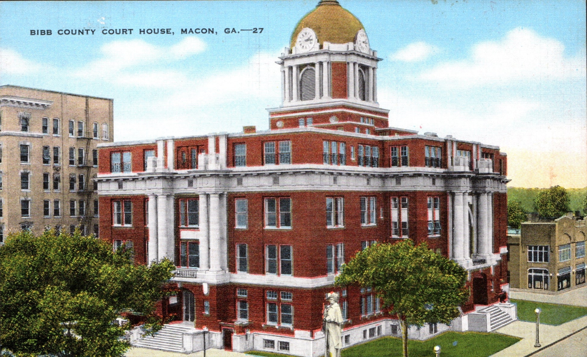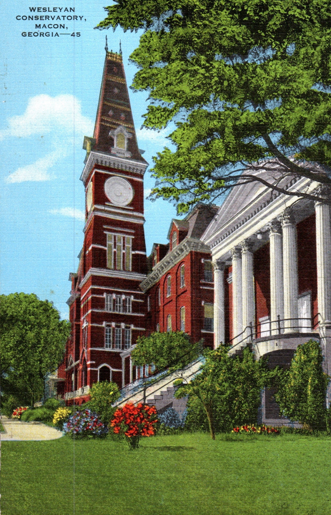 Post cards: Downtown, aerial view [linen]; Third Street Park and downtown buildings [linen, 1945]; Exchange Bank [c.1910]; Bankers Insurance bldg. [linen]; “New Hotel Dempsey” [c.1910]; Ambassador Motel, aerial view [chrome]; Motel Alpine swimming pool [chrome]; Drill’s Court [linen]; Magnolia Court [2 chrome views]; Post Office [1920s?]; Court house [linen]; City Hall [linen]; Mercer Univ. Administration bldg. [chrome]; Greater Wesleyan College [linen, scuff marks]; St. Paul’s Church [c.1910]; Hay House [chrome]; “Old Cannon Ball House” [chrome]; Wesleyan Conservatory [linen]; Washington Park [linen]; “View at Coleman Hill” [linen]; Baconsfield Park [linen]; “Ponds in Baconsfield Park” [linen]