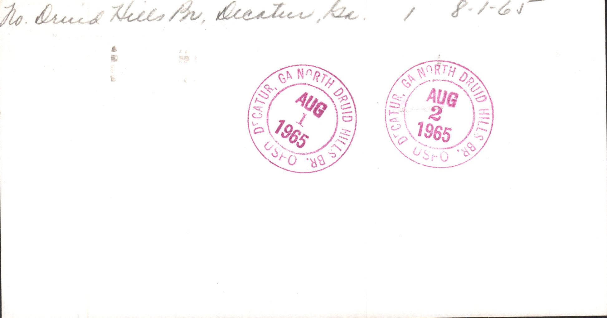 North Druid Hill B 1965 round dater on back of cover-sized card