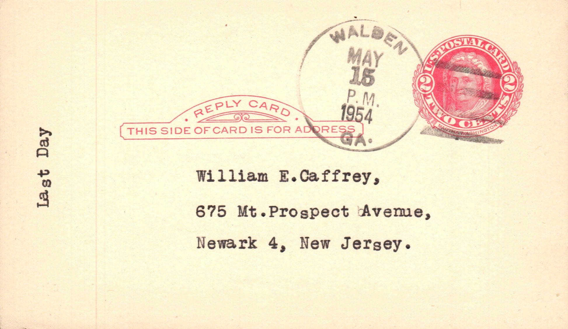 Walton (1878-1954) 1954 4-bar on LD Postal Card