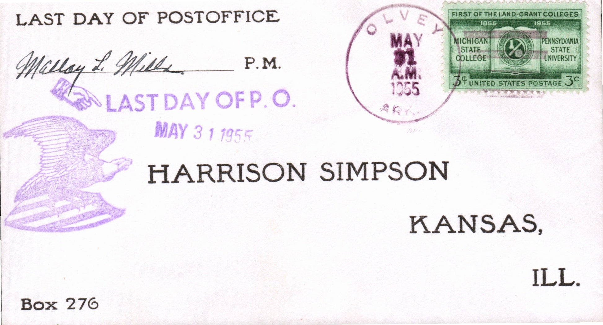Olvey (1904-1955) 1955 4-bar on LD cover