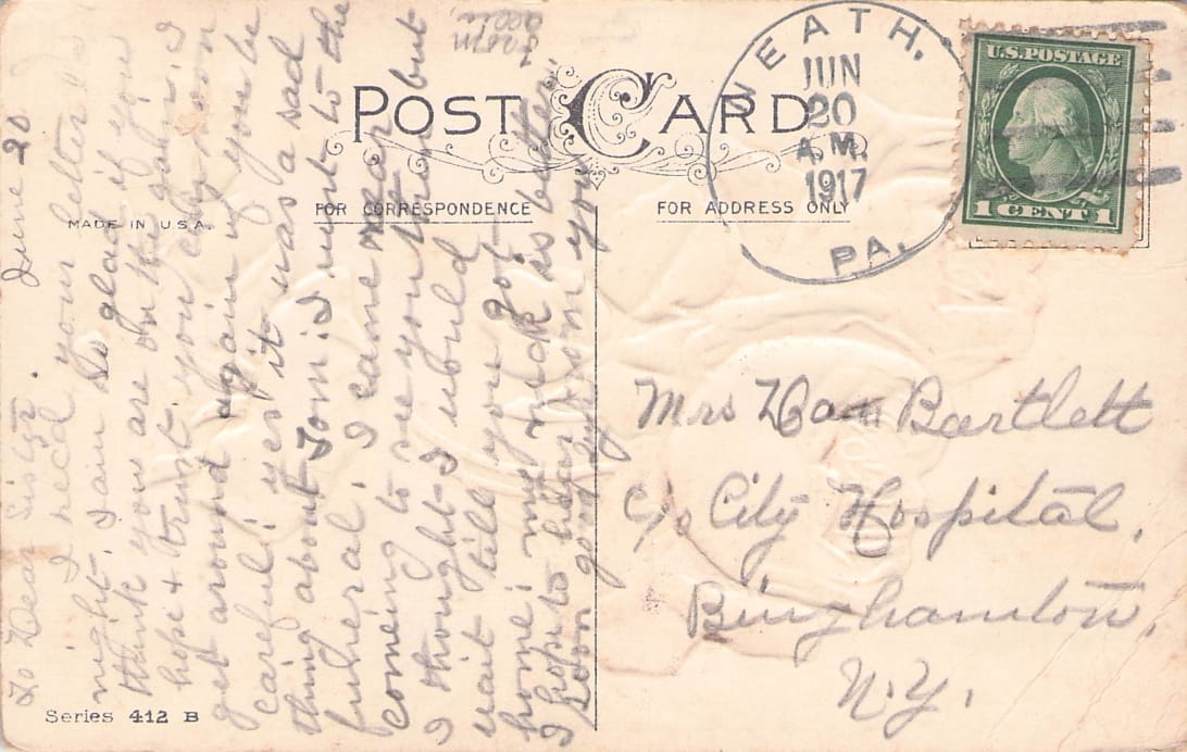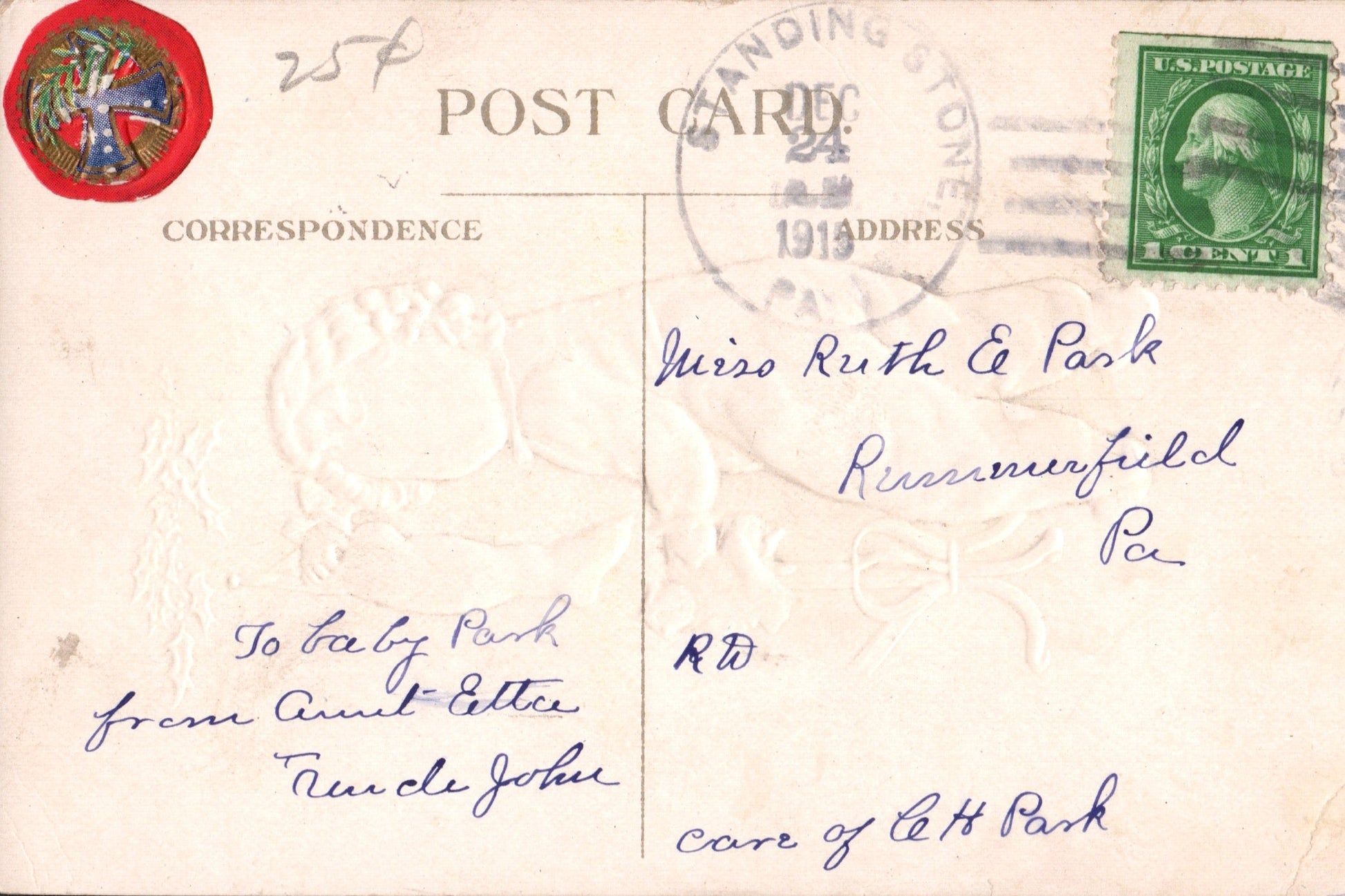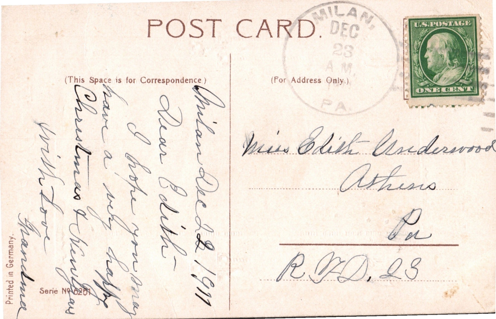 Le Raysville 1921 duplex on Postal Card, on back is “First National Bank of LeRaysville