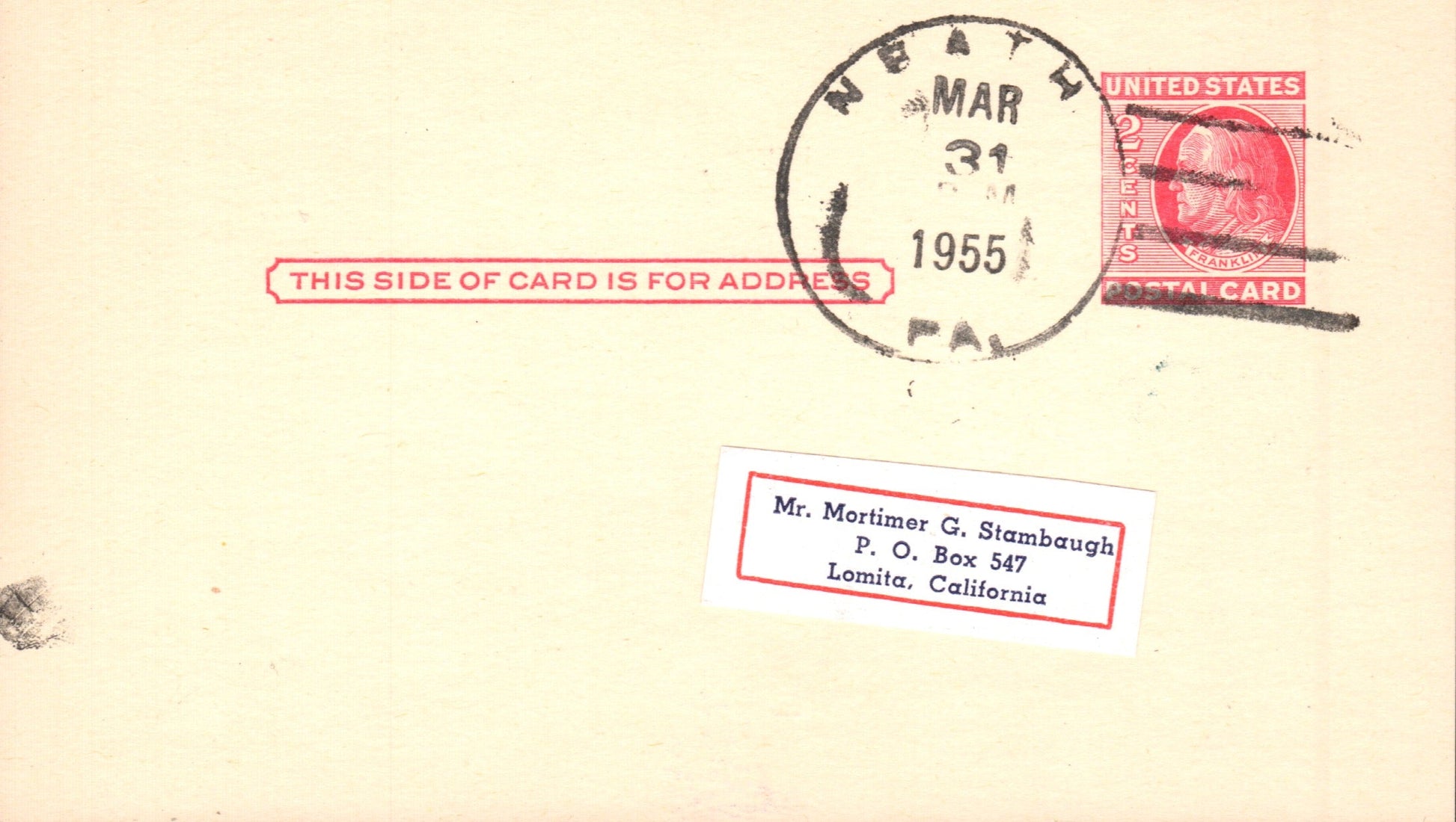 Neath (1870-1955) 1917 4-bar on post card; 1924 4-bar on post card; 1955 4-bar on Postal Card