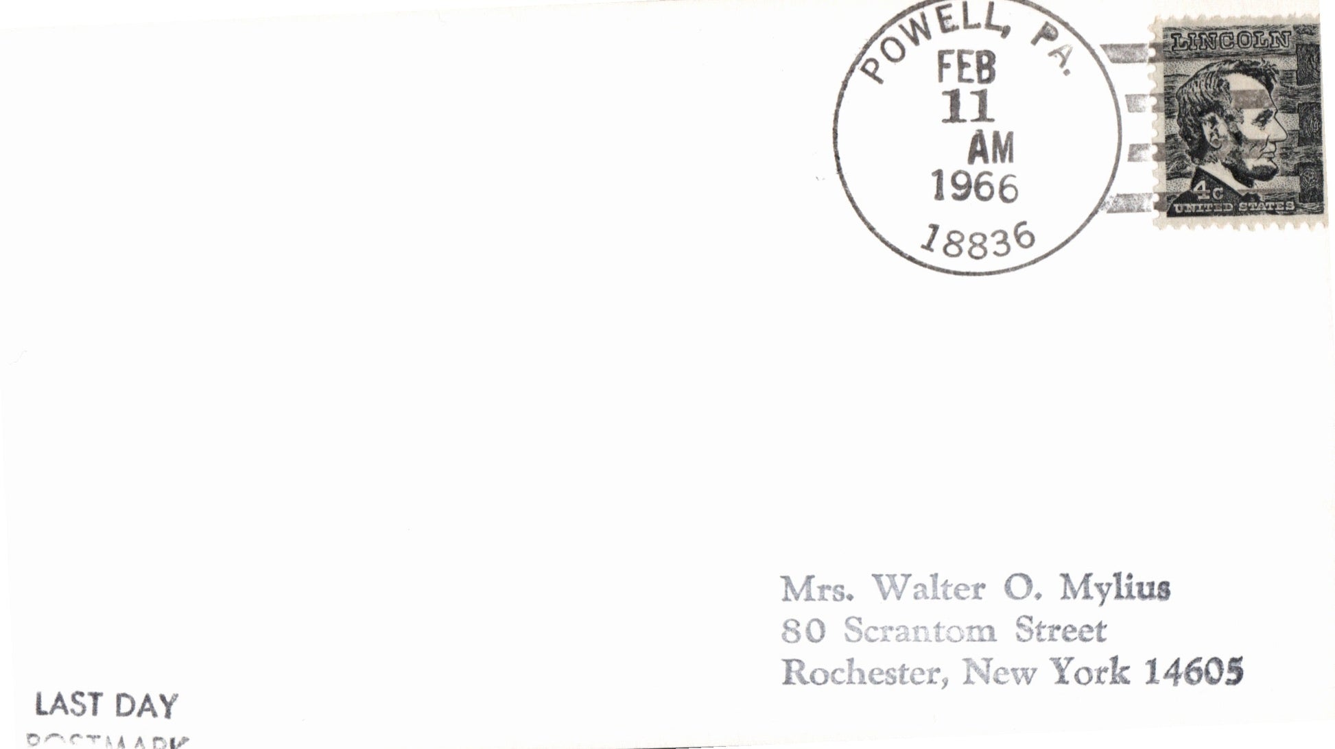 Powell (1872-1966) 1910 duplex on post card [tone corners]; 1966 4-bar on LD cover-sized card