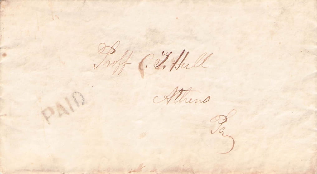 Rome Stampless addressed to Athens PA with “PAID” - a note added to back “Rome Pa. Jan. 19, 1858”