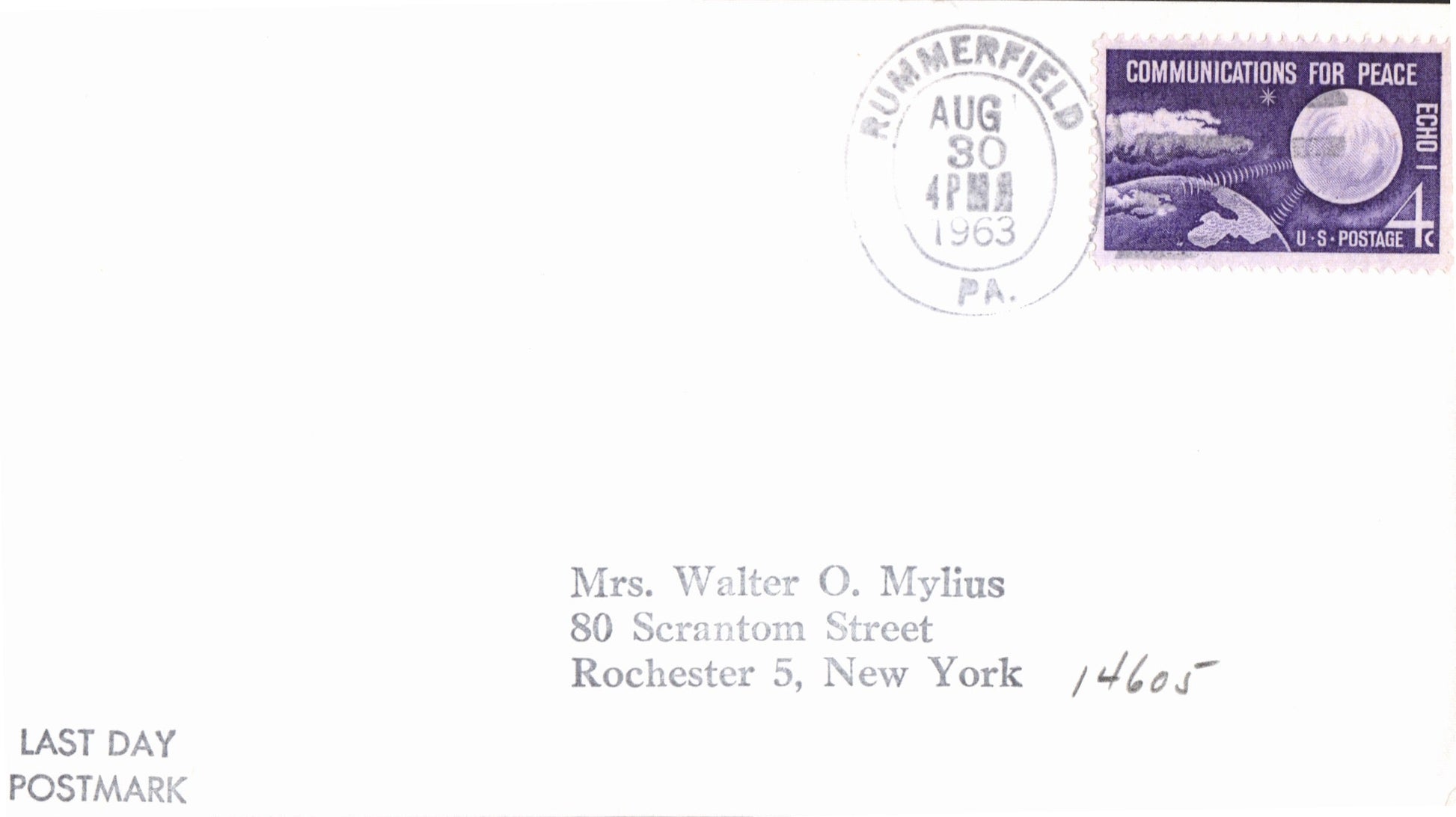 Rummerfield (1893-1963) 1963 round dater on cover-sized card