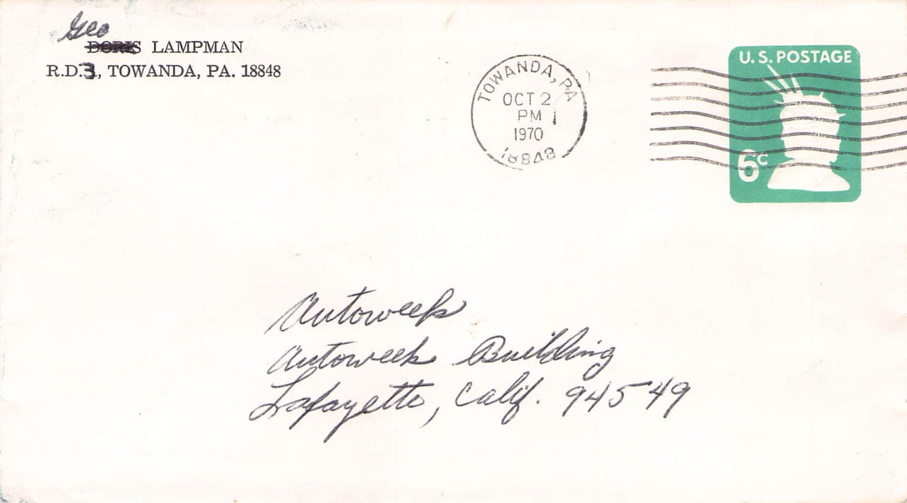 Towanda light 1909 Flag cancel on post card “Table Rock Mountain & River”; 1970 machine cancel on cover.