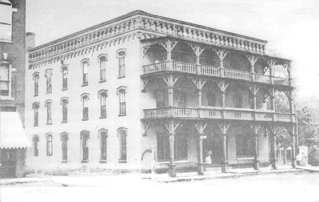 Post cards: “Troy Hotel, Cooke’s Pharmacy & Civic Building” (chrome); Troy House (B&W); Canton Street (B&W); Troy Borough Hall [chrome]