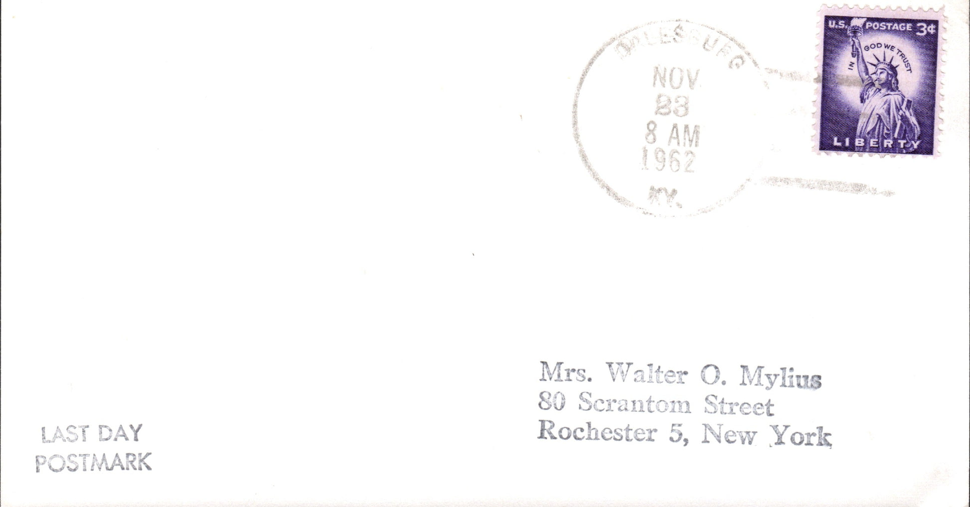 Dalesburg (1923-62) poor 1955 4-bar on LD cover-sized card