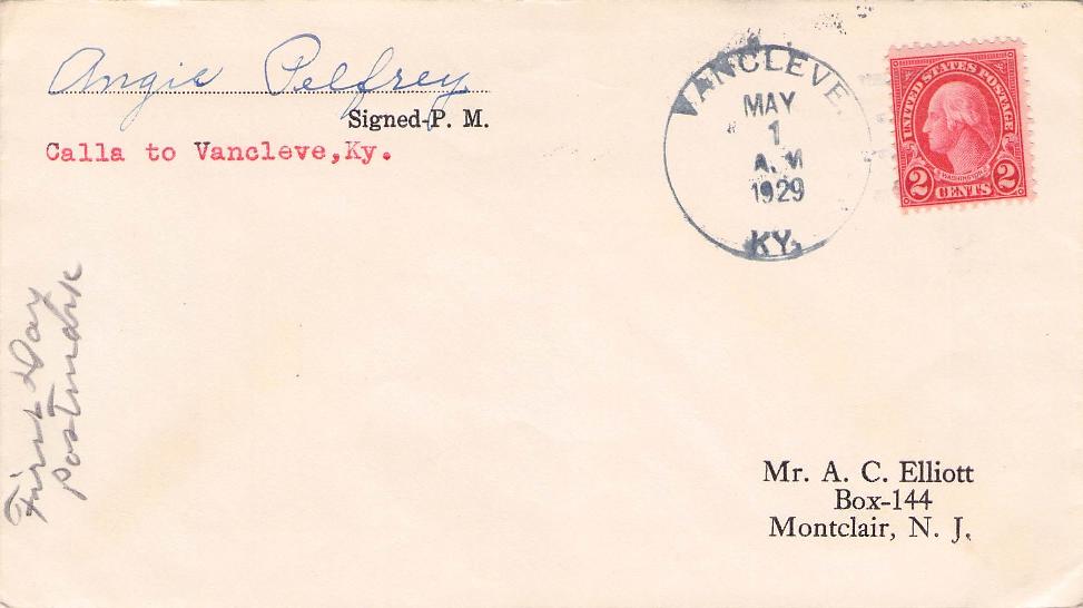 Vancleve 1929 4-bar on FD of office cover, PM autograph