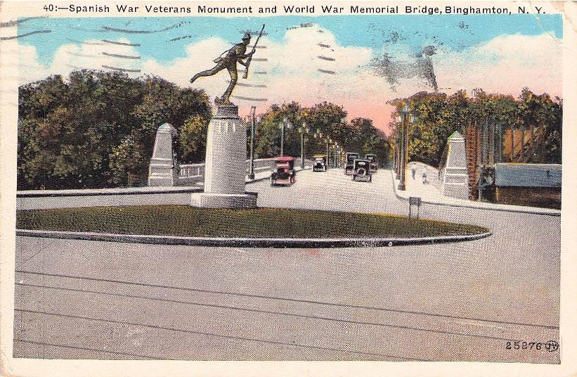 Post cards: Court House [white border, c.1930]; Court House and surroundings [linen]; Armory [1907]; “Spanish War Veterans Monument and World War Memorial Bridge” [white border, 1928]; State Hospital grounds [1936]