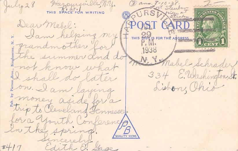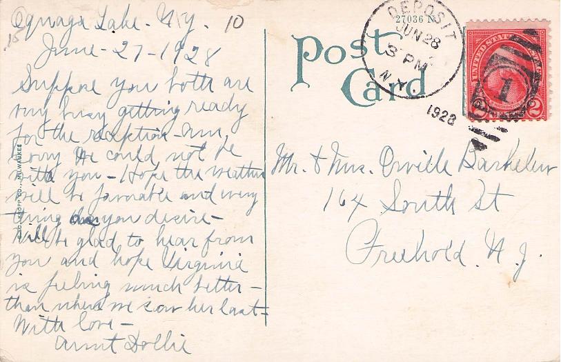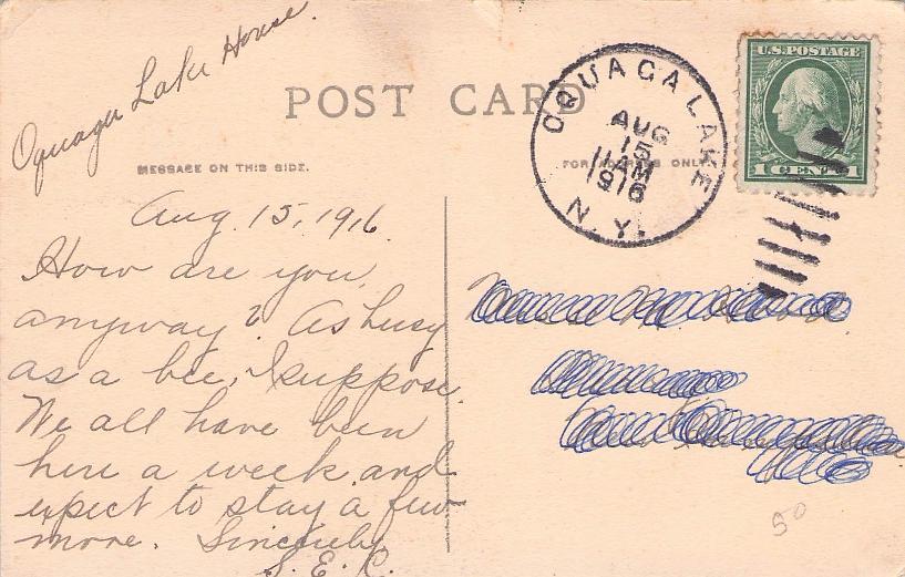 Oquaga Lake (1884-1921) 1916 duplex on post card, view of lake