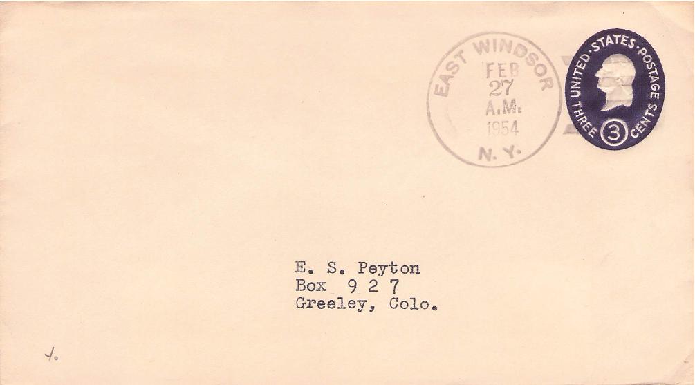 East Windsor (1875-1954) 1909 4-bar on post card; 1954 4-bar on cover