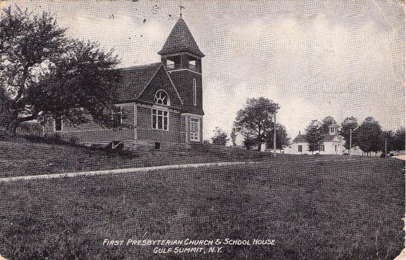 Gulf Summit Post card: “First Presbyterian Church & School House” [B&W 1919]