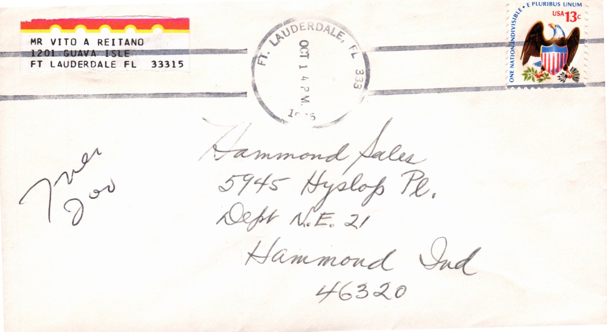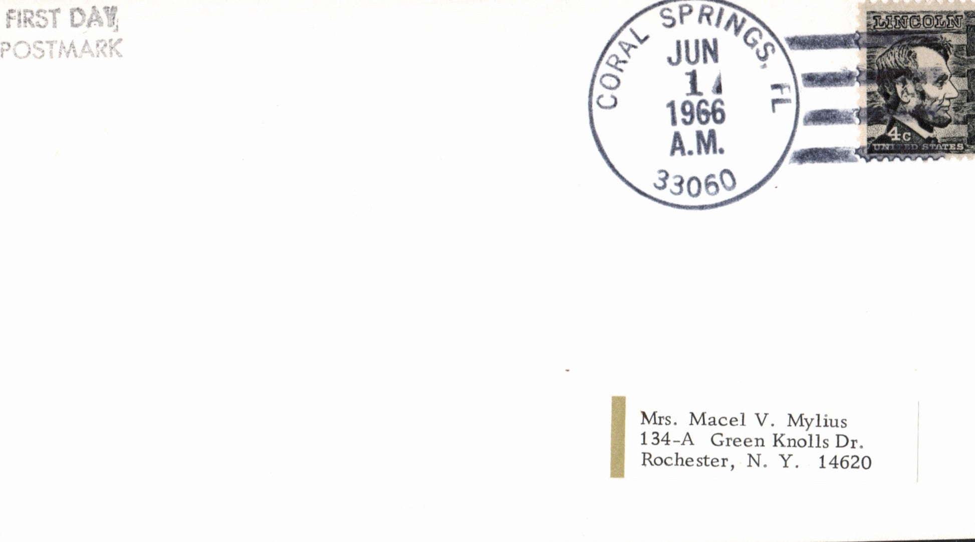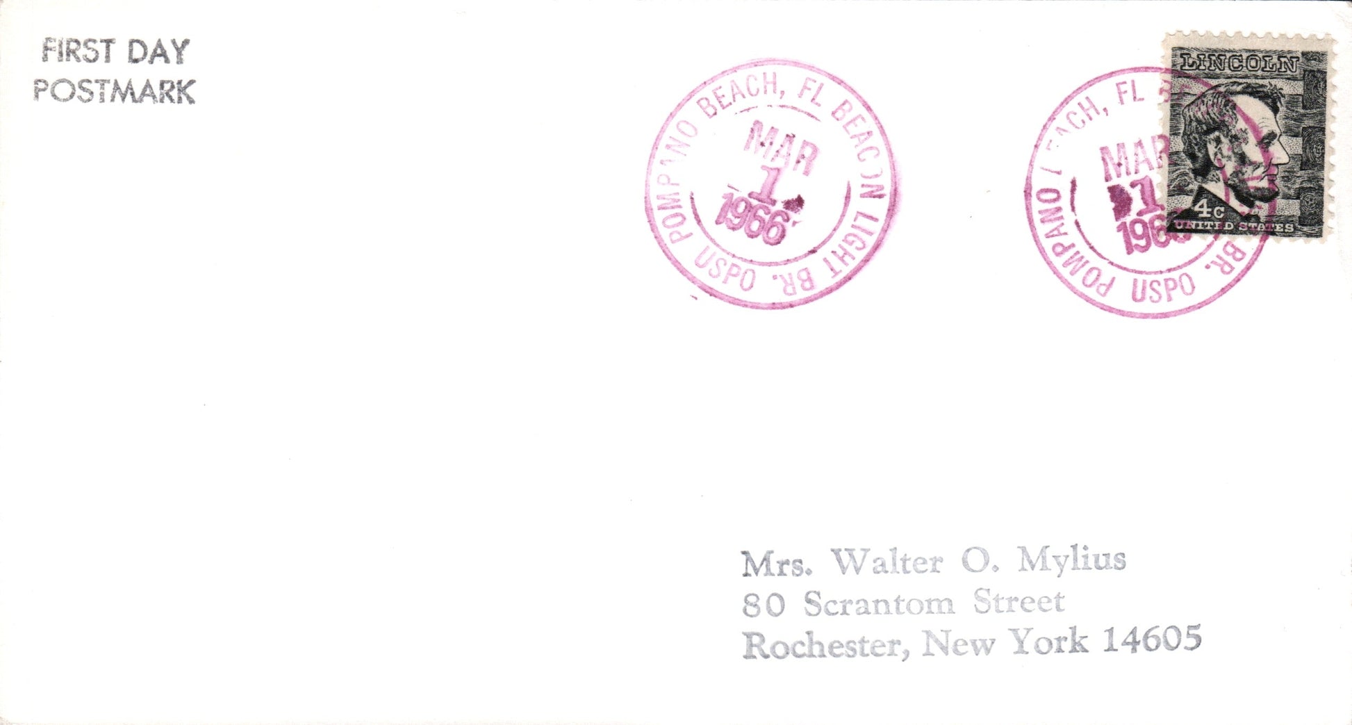 Beach Light Br. (Pompano Beach) 1966 round dater on cover-sized card