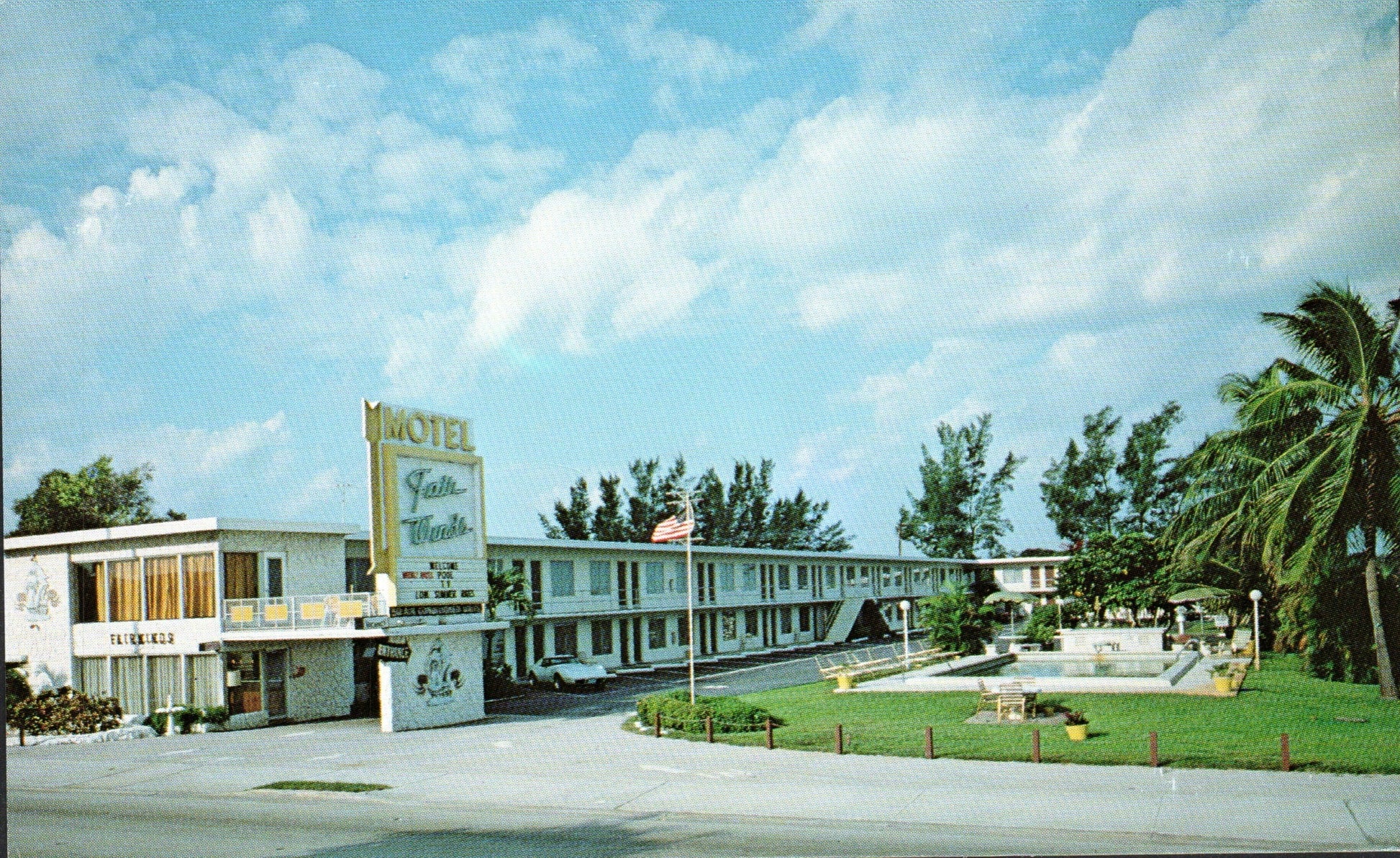 Post cards: Marina & hotel, aerial view [chrome]; Sandcastle Resort [chrome]; boats on New River [chrome]; Beach Club Hotel; chrome]; Fairwinds Motel [chrome]; Waterway [chrome]; Rio apartments [chrome]; Amber Tides Motel [chrome]; Sheraton-Yankee Clipper Hotel [chrome]; Silver Seas Motel [B&W]; Ocean Vista bungalows [B&W]; Creighton’s Restaurant [2 chrome views]; Bennett Community Hospital [chrome]; Broward General Hospital [B&W, 1940s]; Broward County Hospital [chrome]; Banyan tree [B&W], swimming pool [chrome]; Everglades Holiday Park [chrome]
