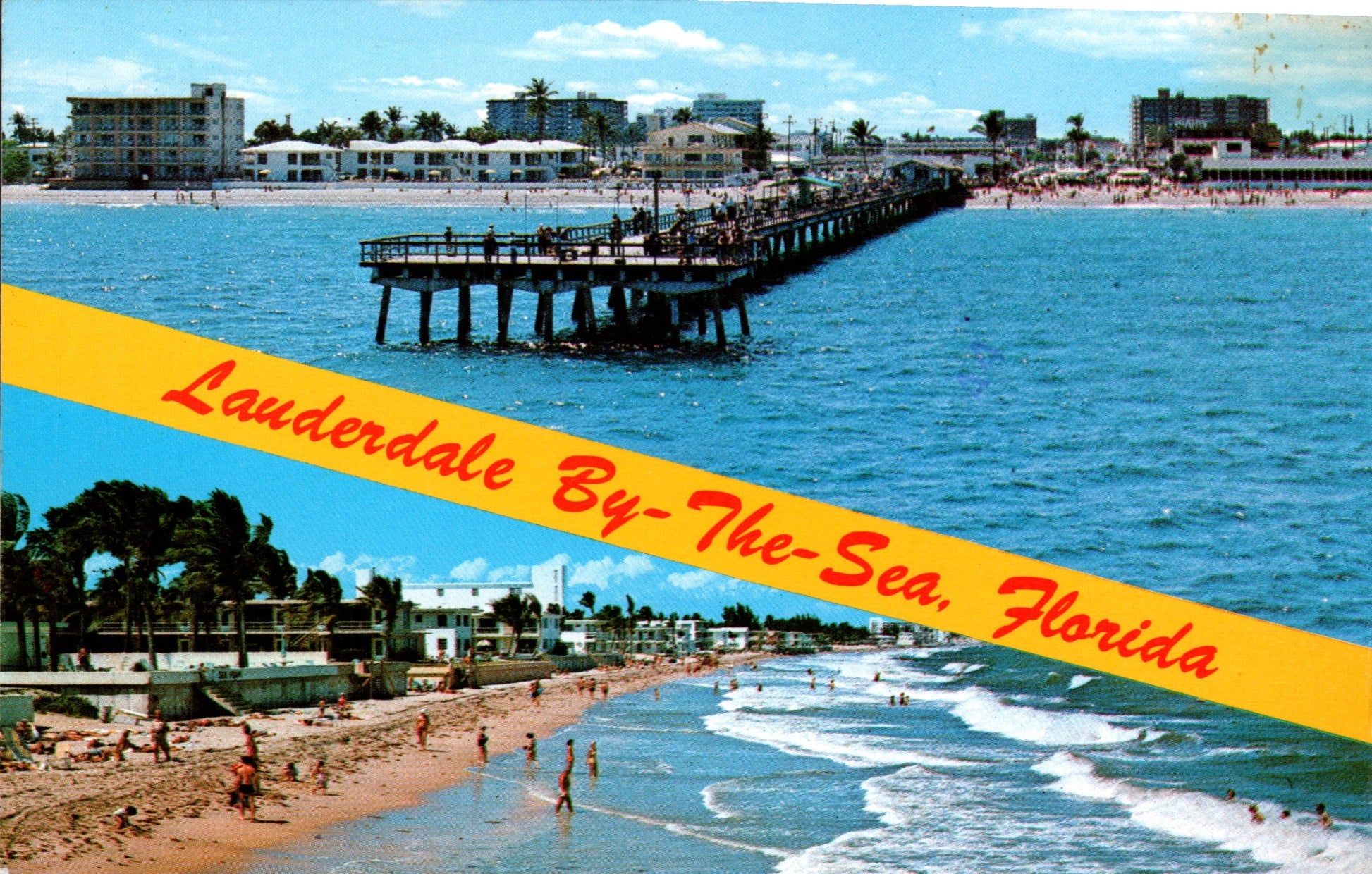 Lauderdale-by-the-Sea Post card: View card with two scenes [chrome]