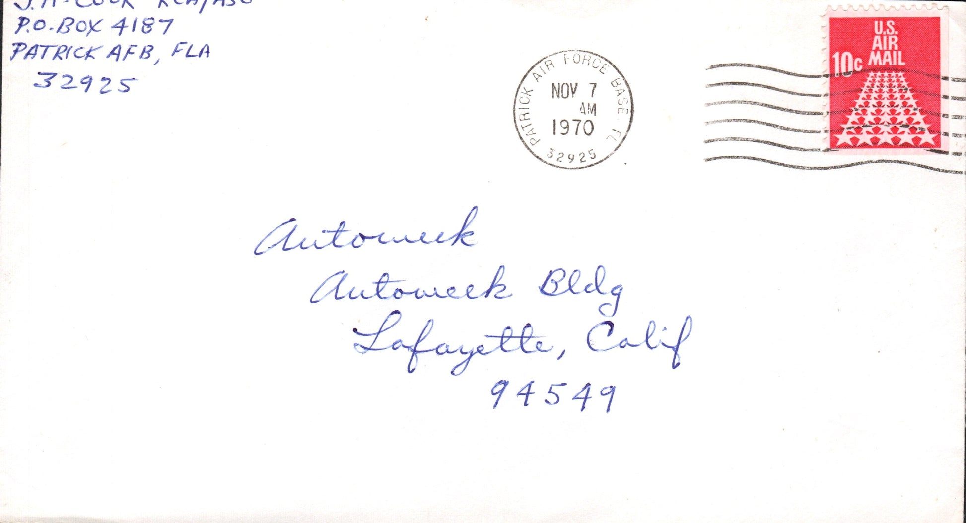 Patrick Air Force Base 1970 machine cancel on cover