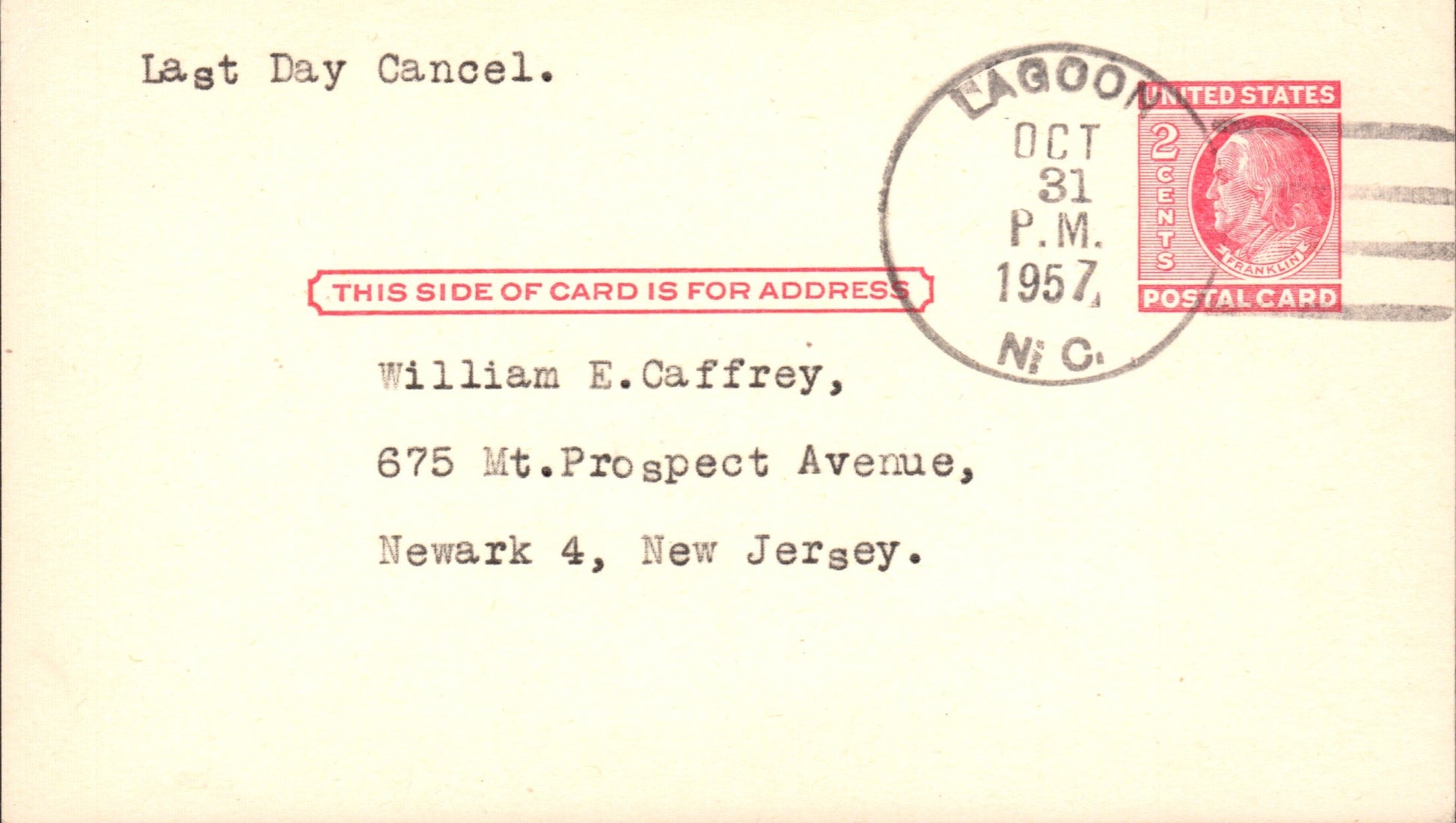Lagoon (1886-1957) 1957 4-bar on LD Postal Card