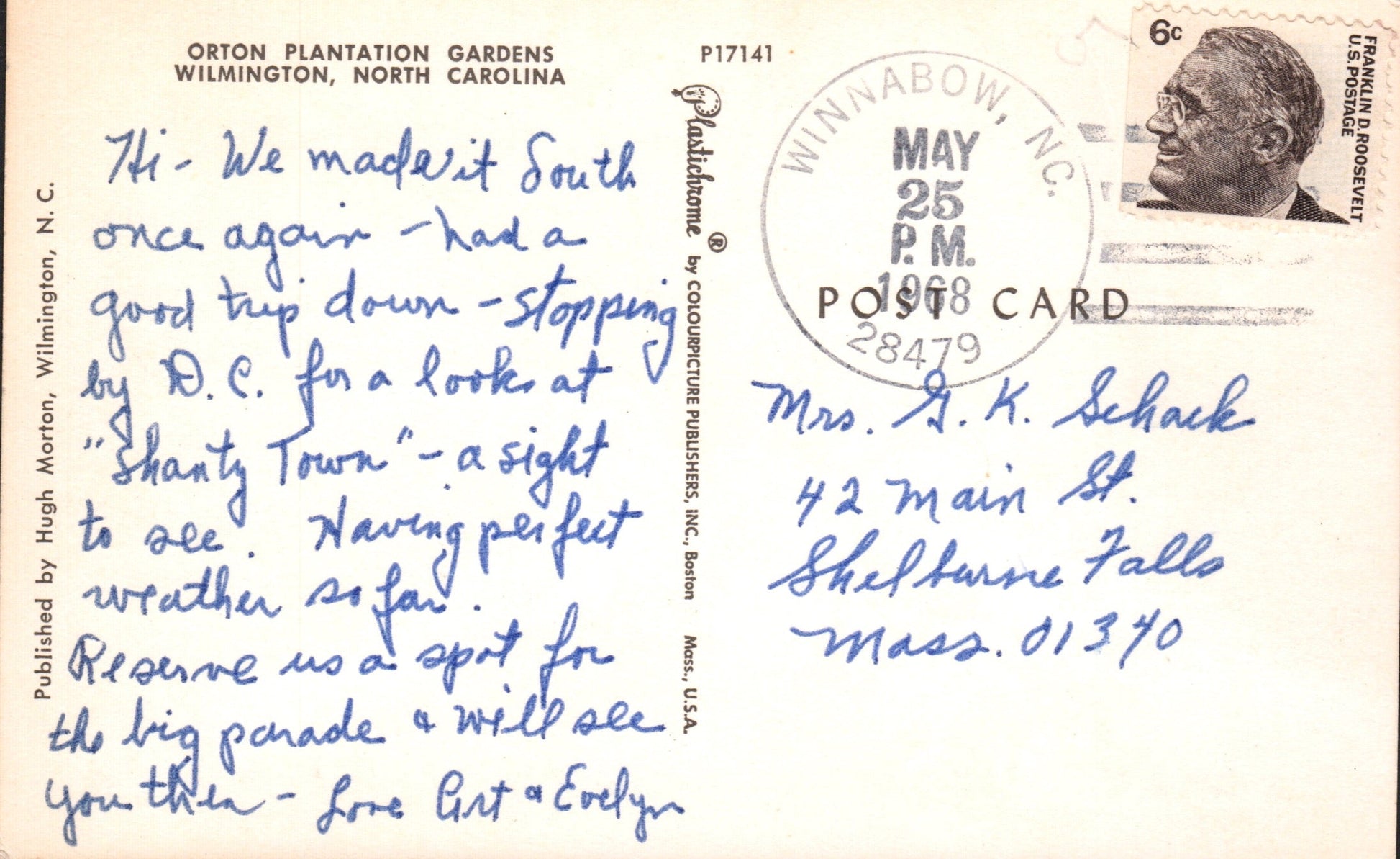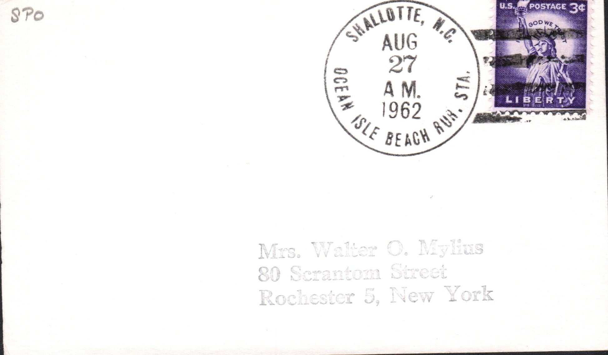 Ocean Isle Beach RS (Shallotte) 1962 4-bar on 3x5 card (Summer P.O.)