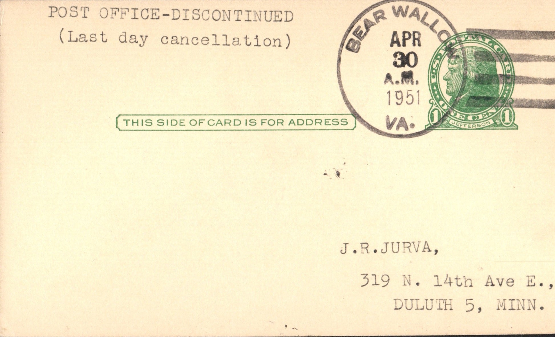 Bear Wallow (1874-1951) 1951 4-bar on LD Postal CardCannady (1916-1961) 1961 4-bar on LD cover, PM autograph on back
