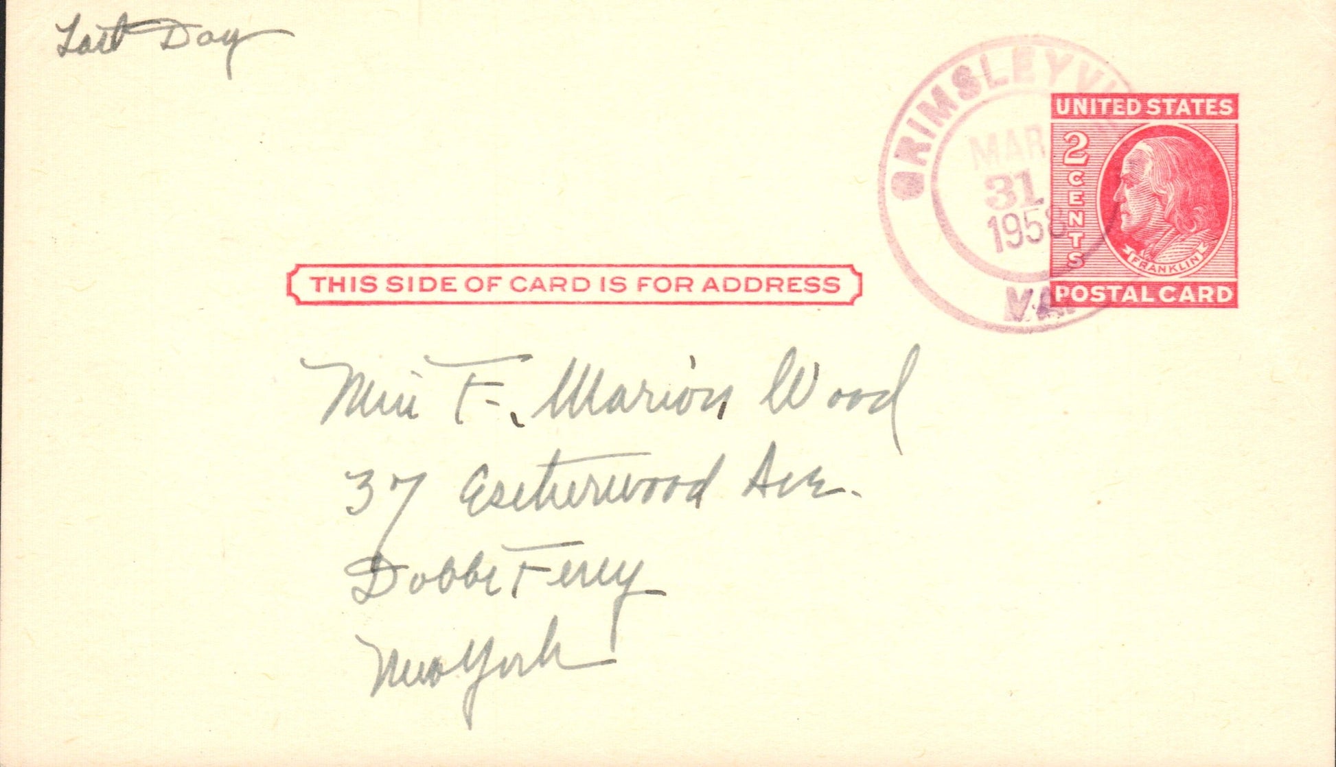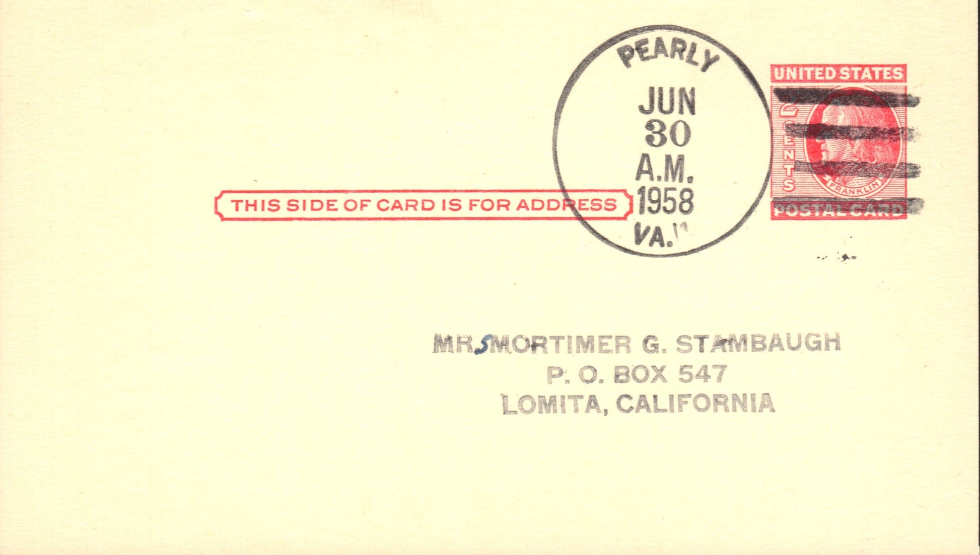 Pearly (1903-1958) 1958 4-bar on LD Postal Card