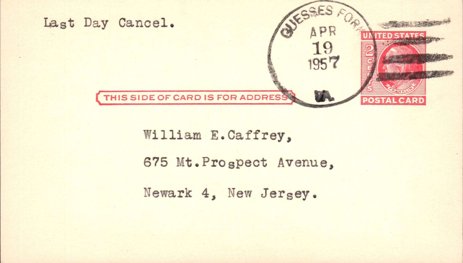 Guesses Fork (1944-1957) 1957 4-bar on LD Postal Card
