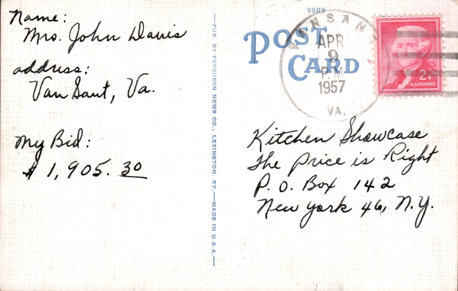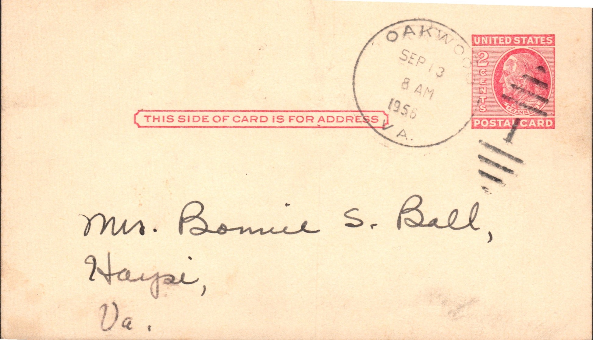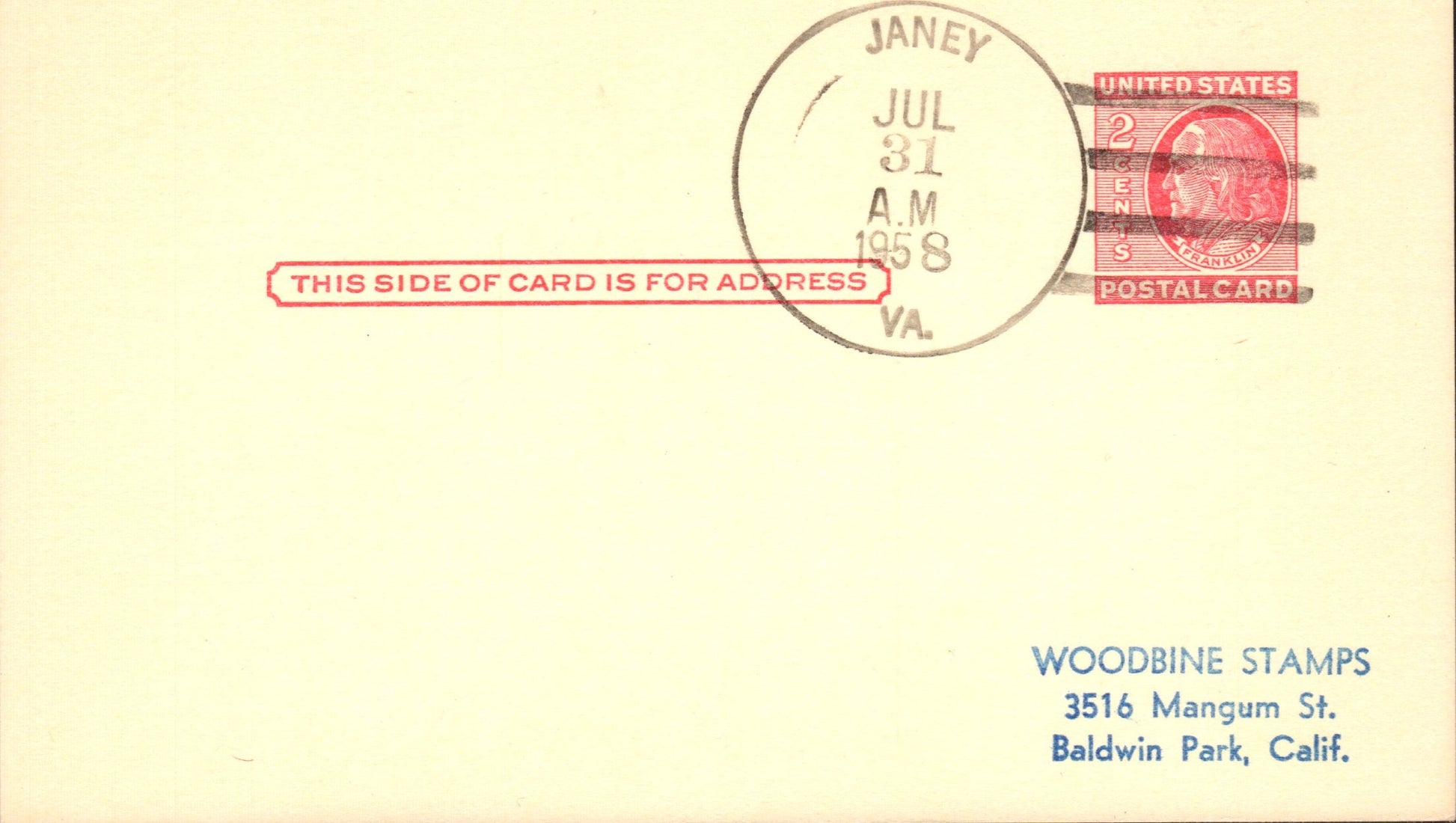 Janey (1950-1958) 1958 4-bar on LD Postal Card