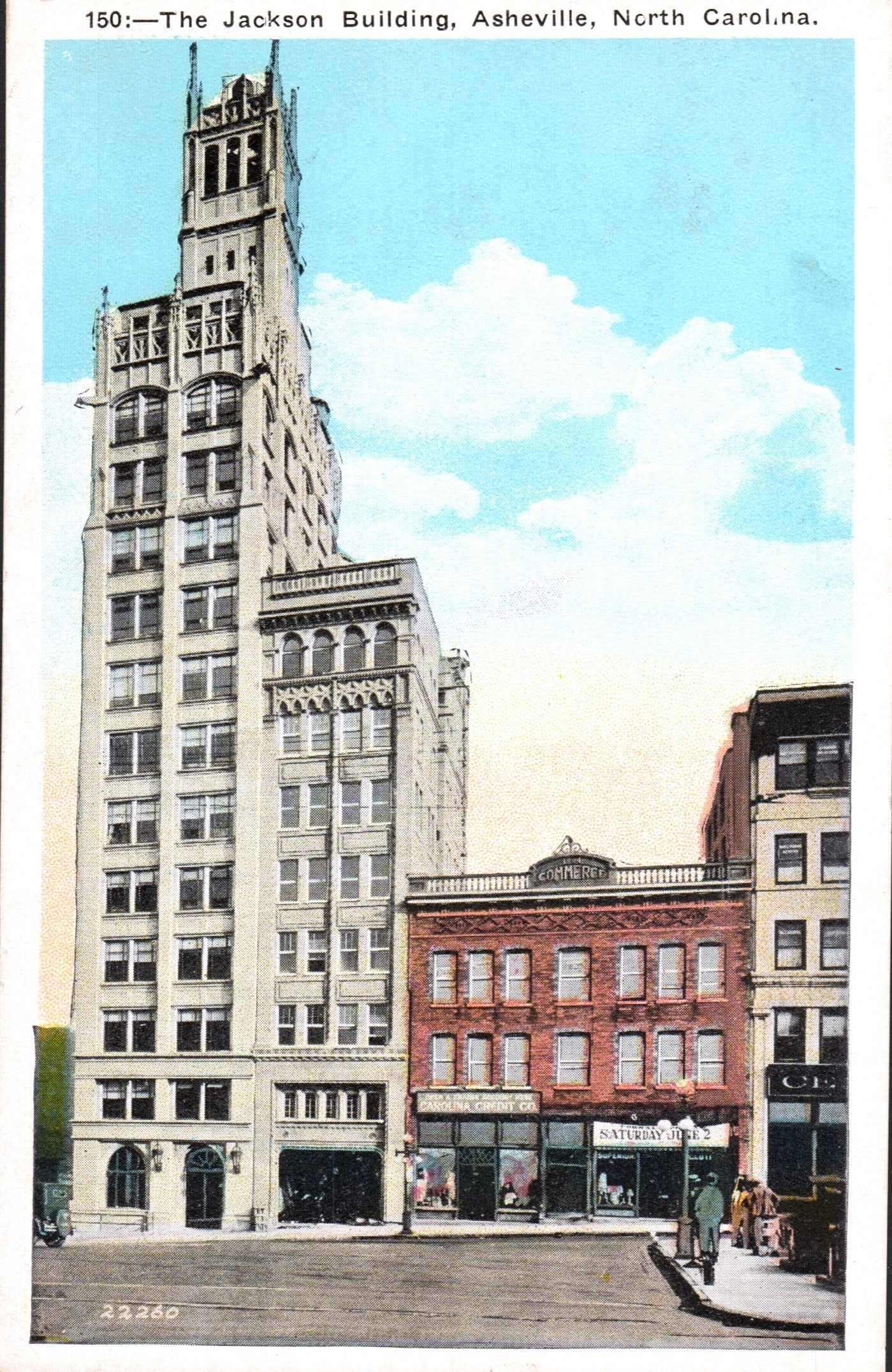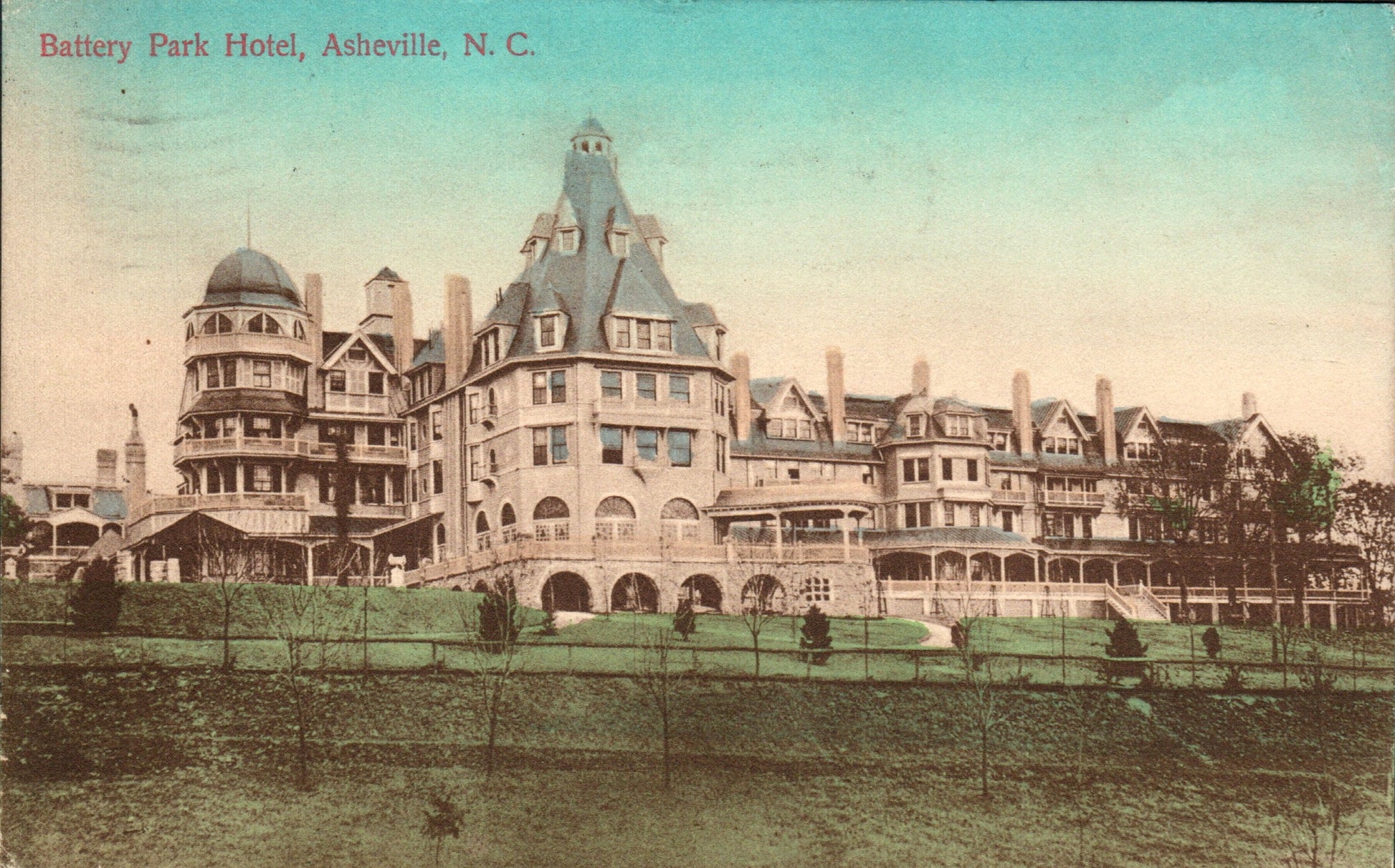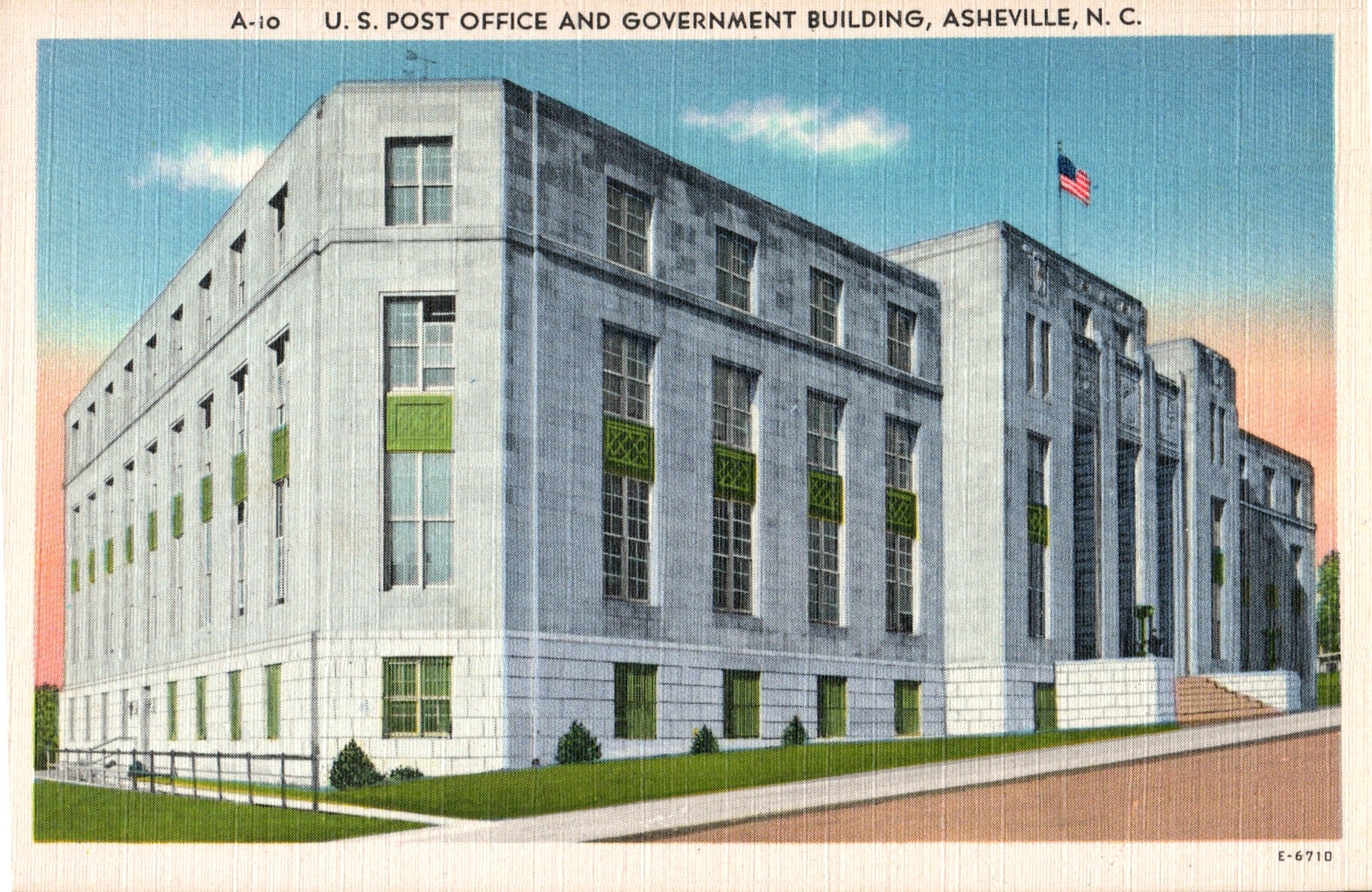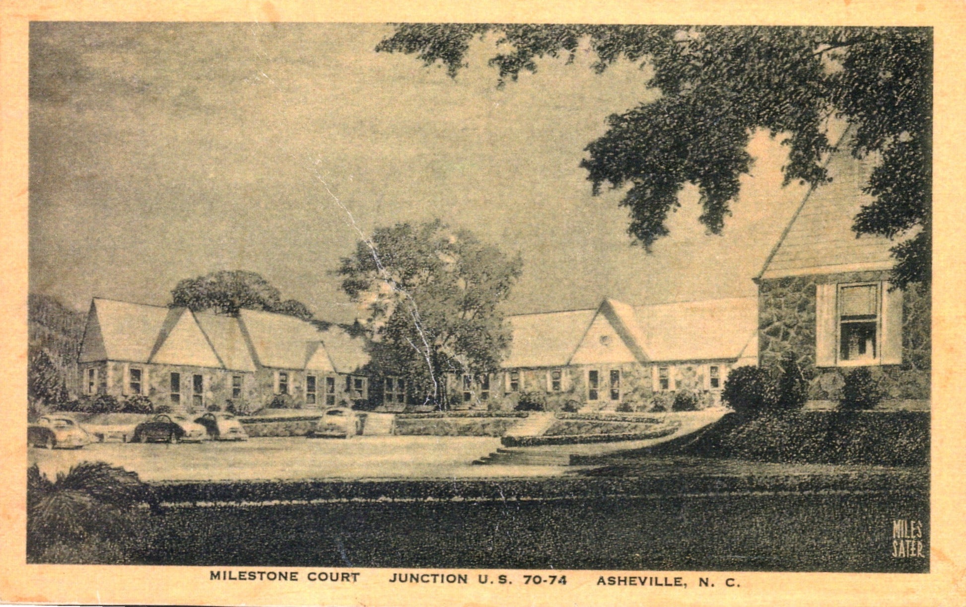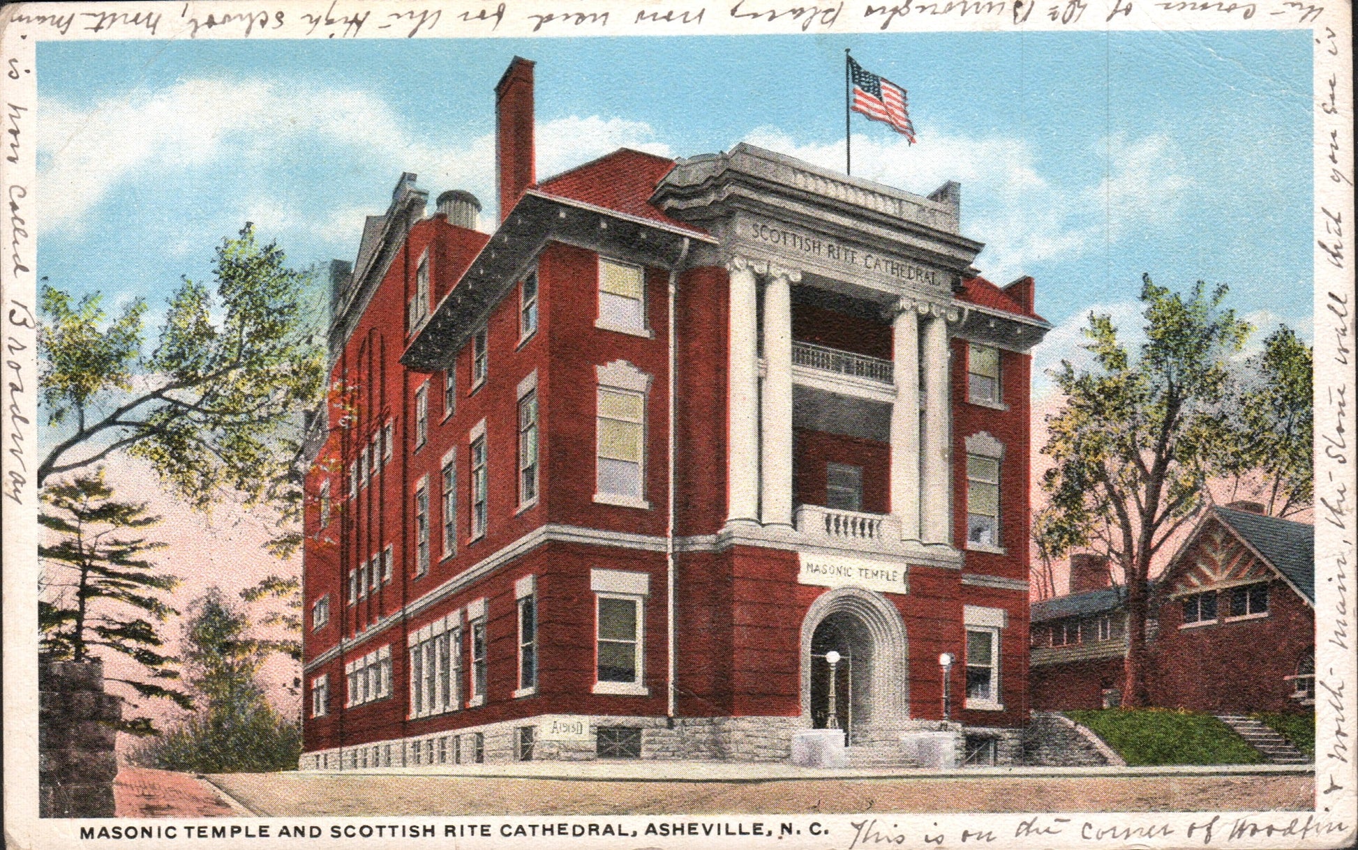 - Post cards: Overview of downtown [c.1940]; Skyline view [chrome]; Court House, City Building and Plaza [1920s]; “Pack Square from City Hall,” street cars [1910, bad corner]; Jackson Building [c.1910]; Battery Park Hotel [c.1910]; George Vanderbilt Hotel, Auditorium [linen, 1948]; Langren Hotel [c.1910]; Holiday Motel [chrome]; American Court [chrome]; Milestone Court {B&W, 1940s]; Twilight Court [chrome]; Beaver Lake Court [chrome]; Rock Haven Terrace [lodging]; chrome]; Bucks Restaurant [chrome]; Ference Cheese Shop [chrome]; Asheville Airport [chrome]; Post office [linen]; Florence Stephenson Hall [1936]; Masonic Temple [c.1910]; First Christian Church [linen]; Grove Park Inn [linen]