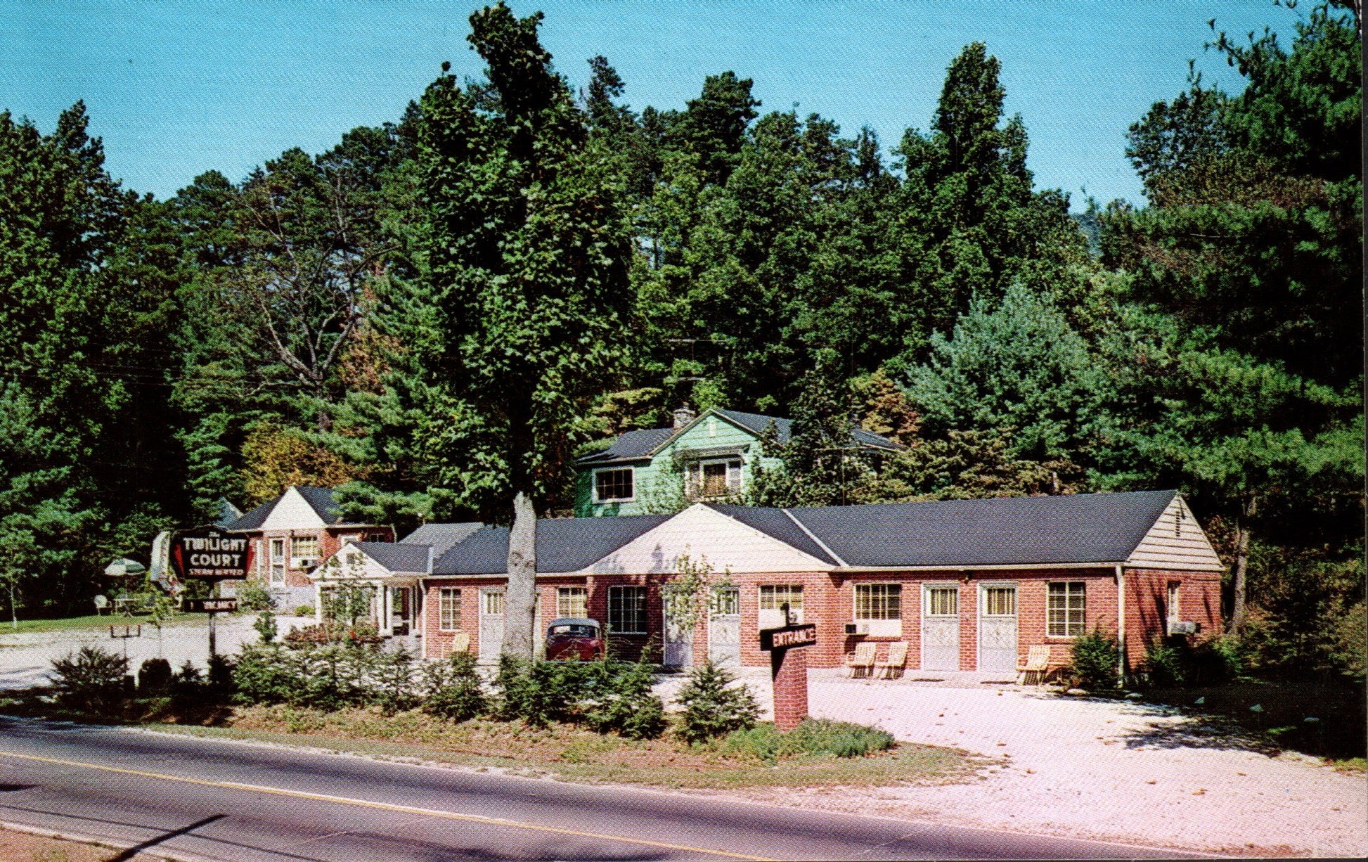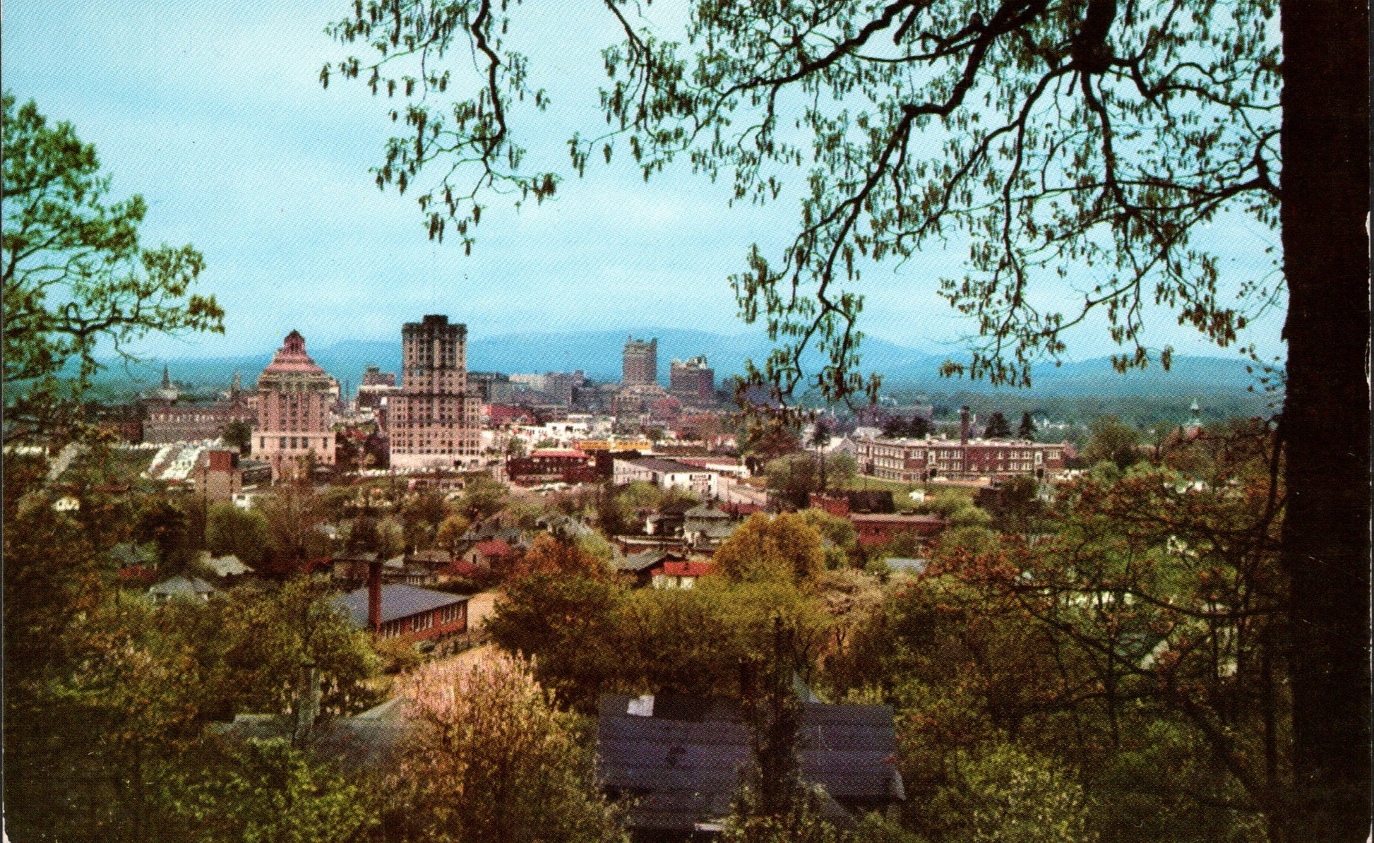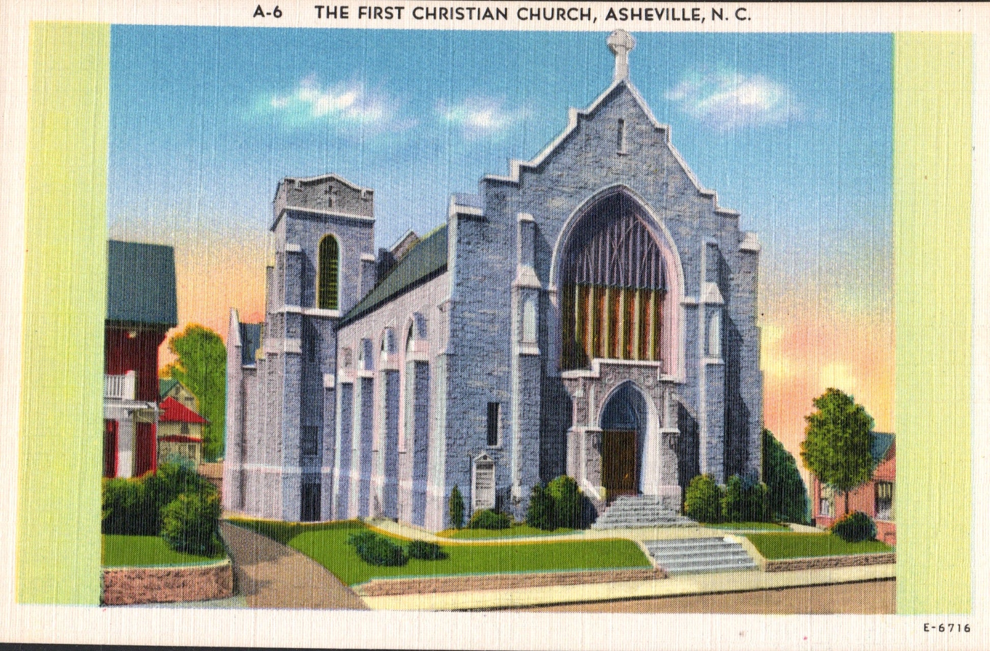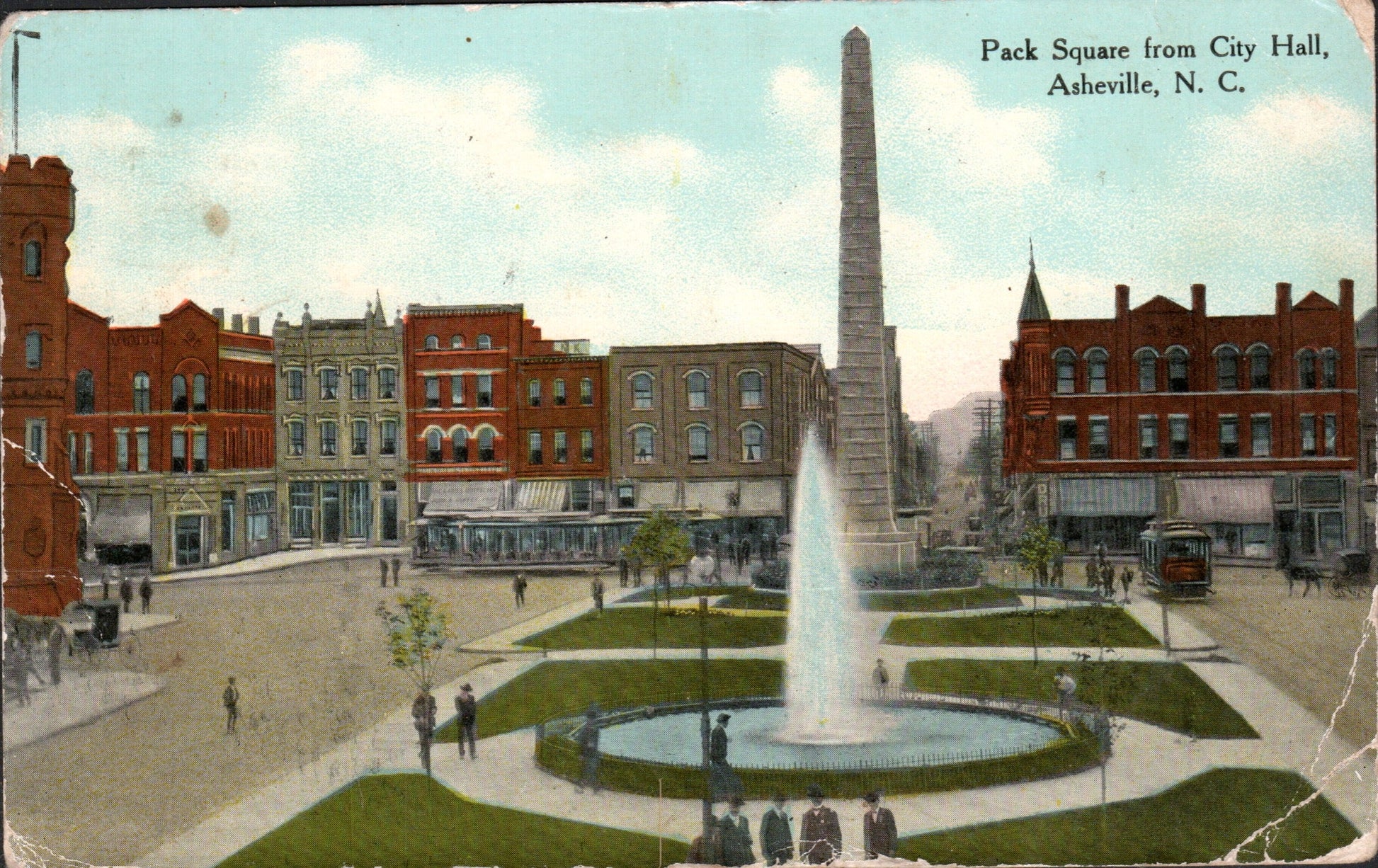 - Post cards: Overview of downtown [c.1940]; Skyline view [chrome]; Court House, City Building and Plaza [1920s]; “Pack Square from City Hall,” street cars [1910, bad corner]; Jackson Building [c.1910]; Battery Park Hotel [c.1910]; George Vanderbilt Hotel, Auditorium [linen, 1948]; Langren Hotel [c.1910]; Holiday Motel [chrome]; American Court [chrome]; Milestone Court {B&W, 1940s]; Twilight Court [chrome]; Beaver Lake Court [chrome]; Rock Haven Terrace [lodging]; chrome]; Bucks Restaurant [chrome]; Ference Cheese Shop [chrome]; Asheville Airport [chrome]; Post office [linen]; Florence Stephenson Hall [1936]; Masonic Temple [c.1910]; First Christian Church [linen]; Grove Park Inn [linen]
