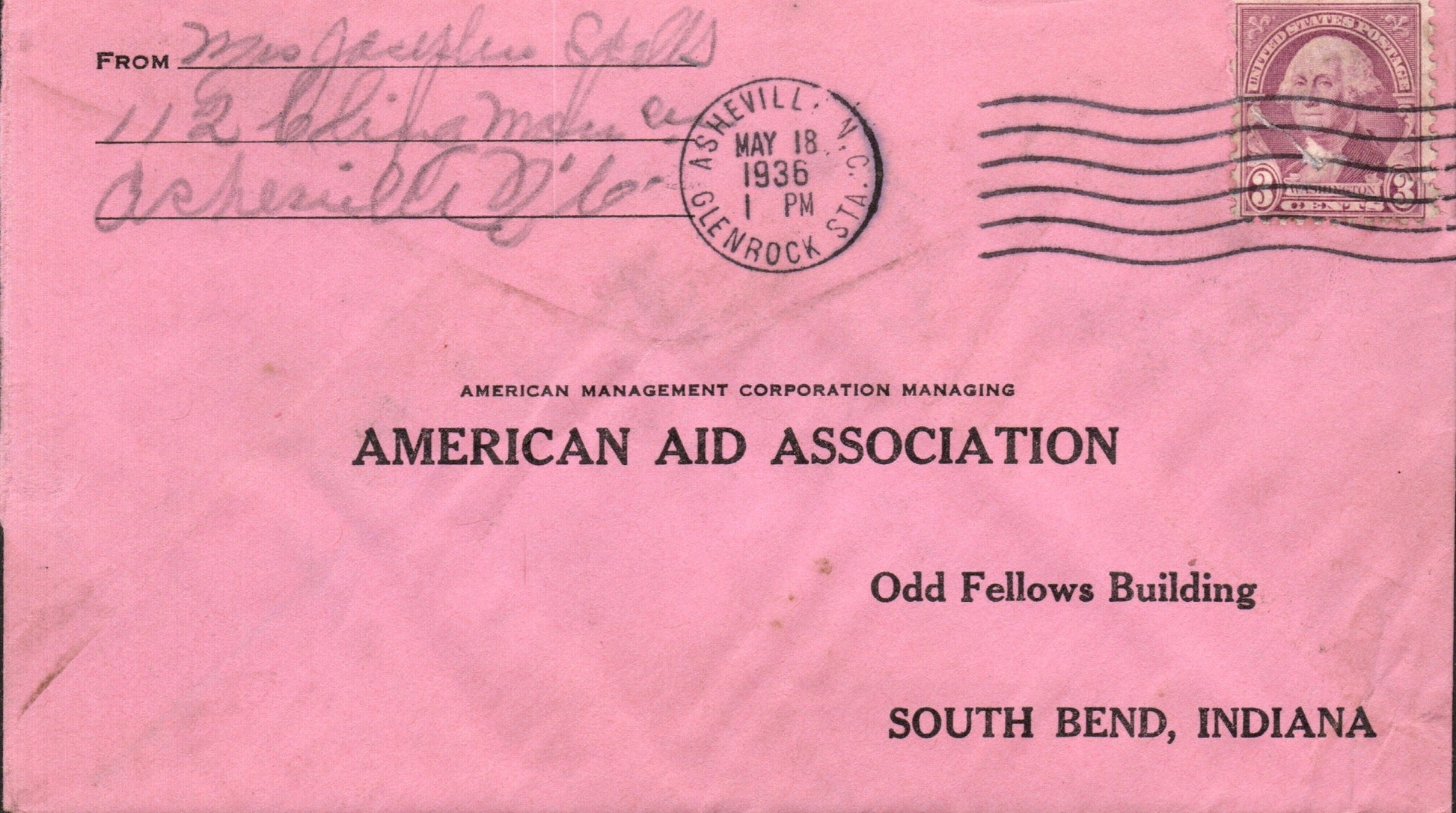 - Glenrock Sta. (Asheville) 1935 machine cancel on pink cover