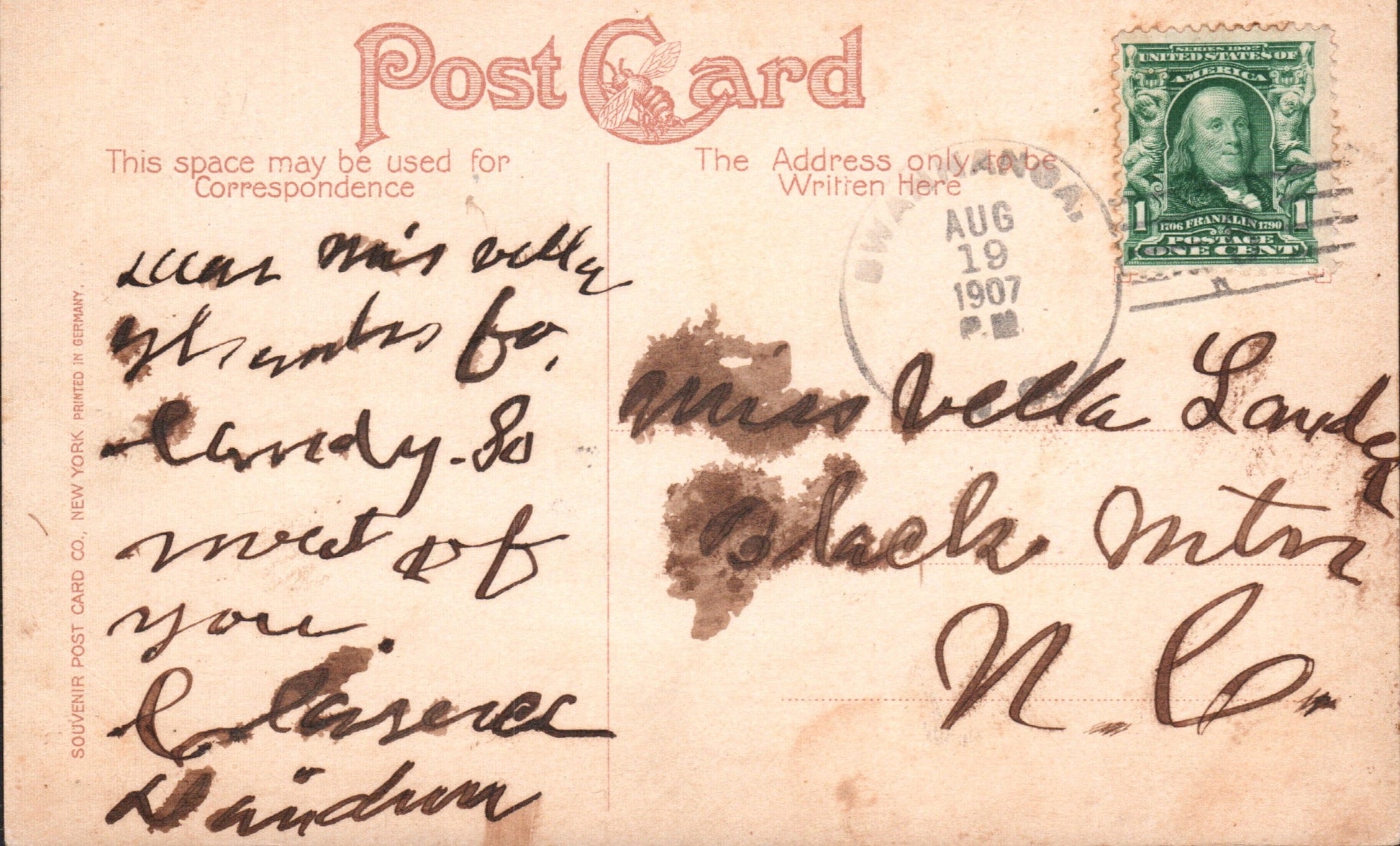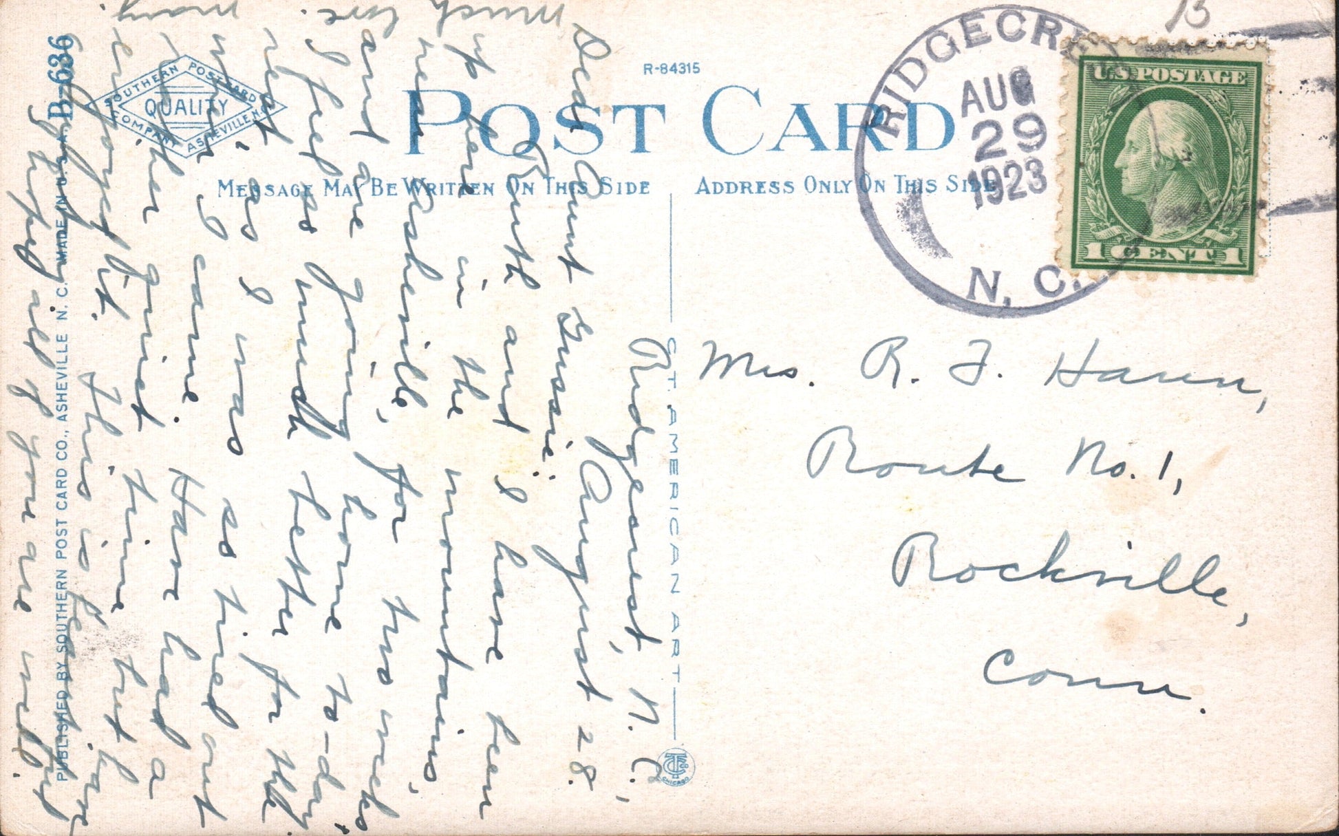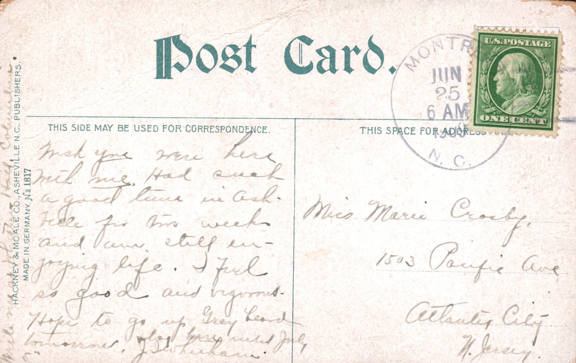 - Post card: “Blue Ridge Mountains near Asheville” [1908]