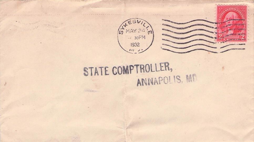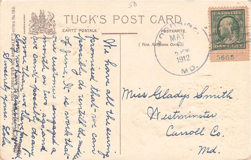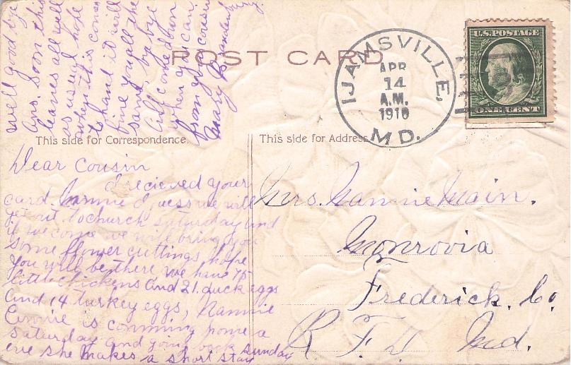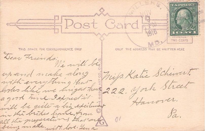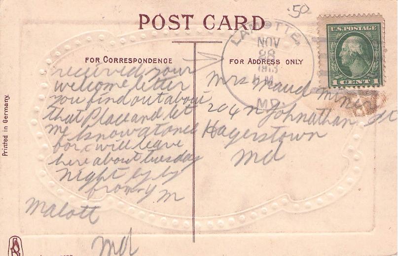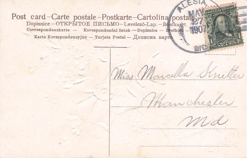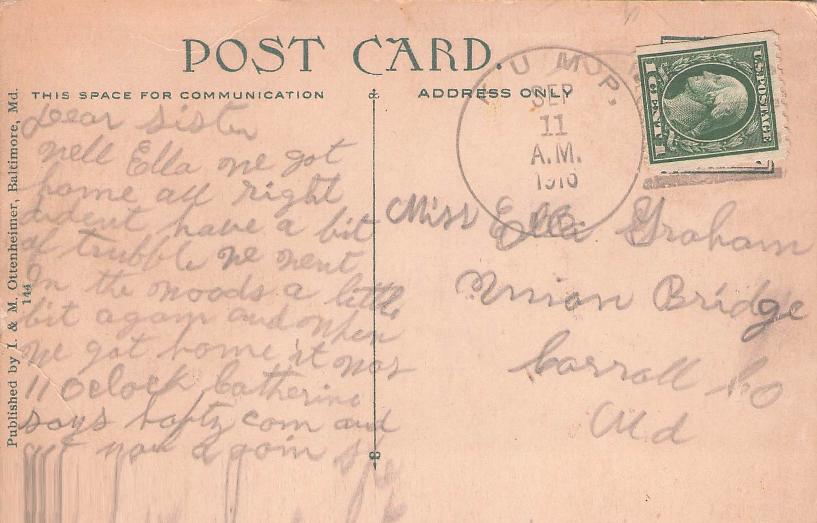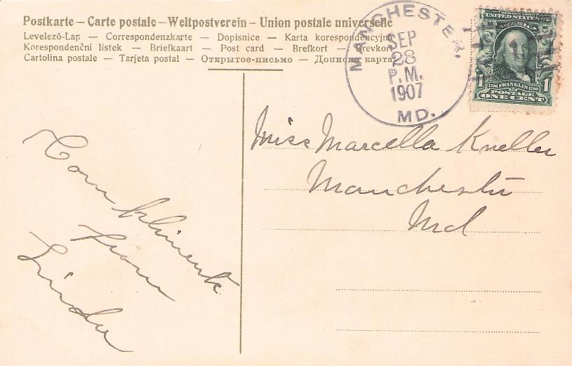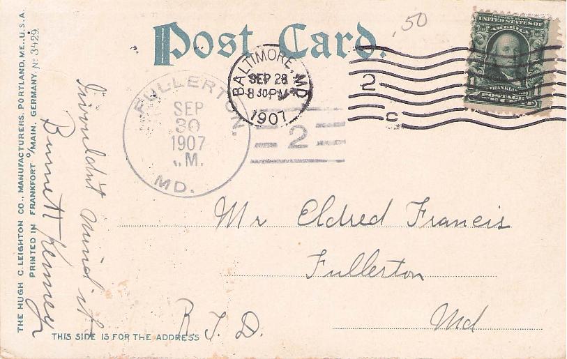 Fullerton 1907 Doane 2 as rec’g mark on post card from Baltimore