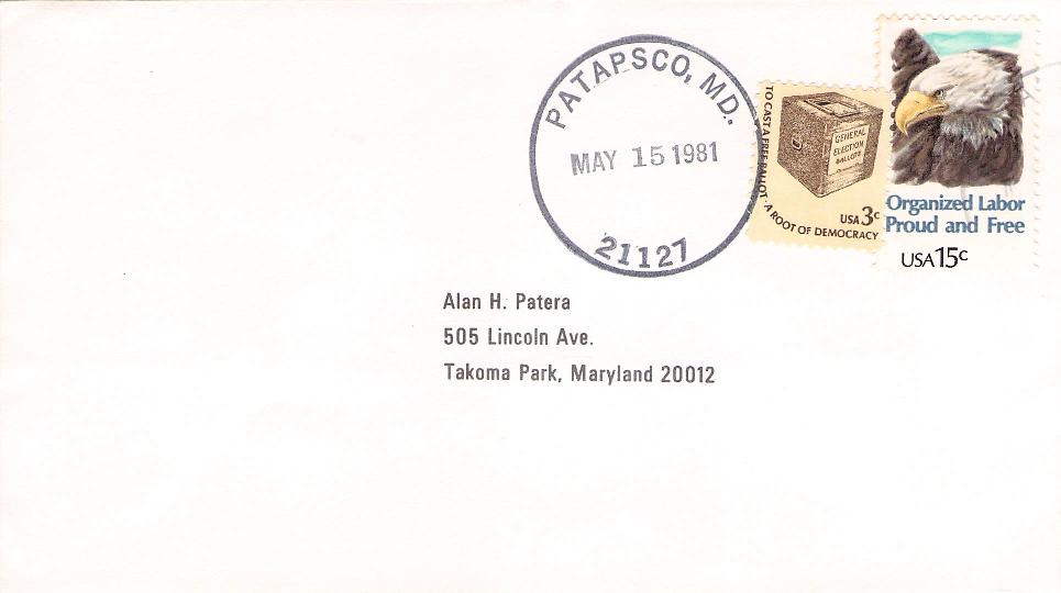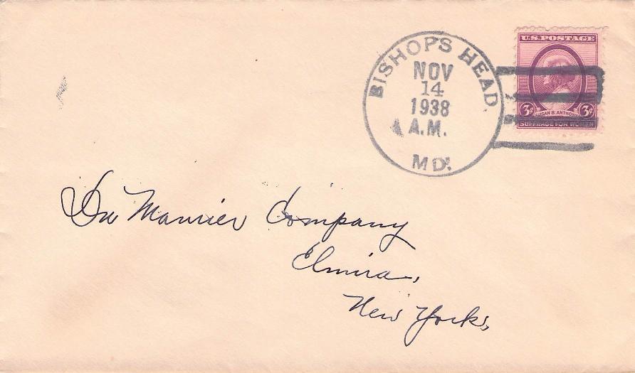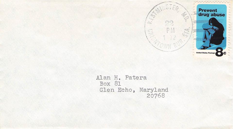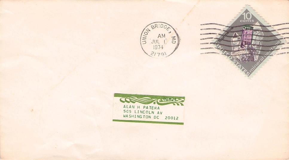 Union Bridge 1908? duplex on post card; 1974 machine cancel on cover