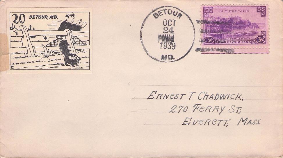 Detour 1907 on post card; 1927 4-bar on post card; 1939 4-bar on collector cover