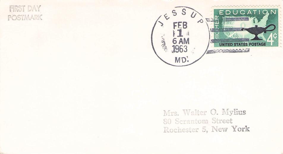 Jessup 1963 4-bar on cover-sized card, FD of spelling, PM autograph