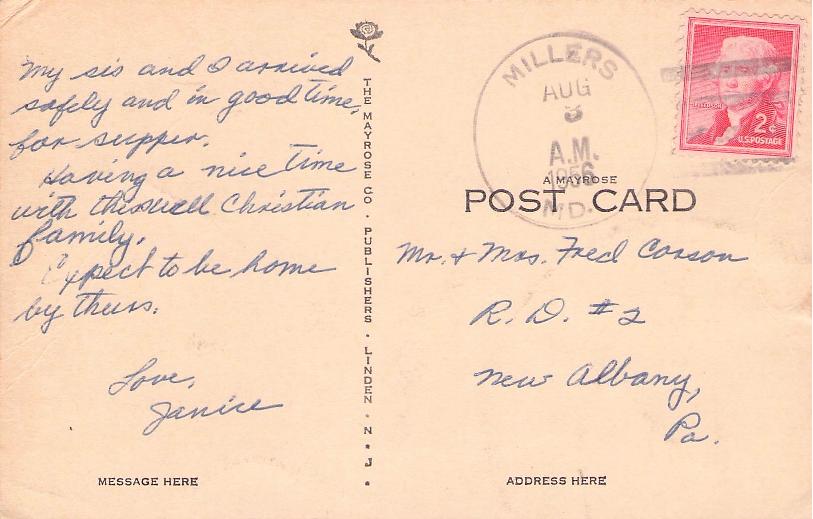Millers 1916 4-bar on post card; 1956 4-bar on post card