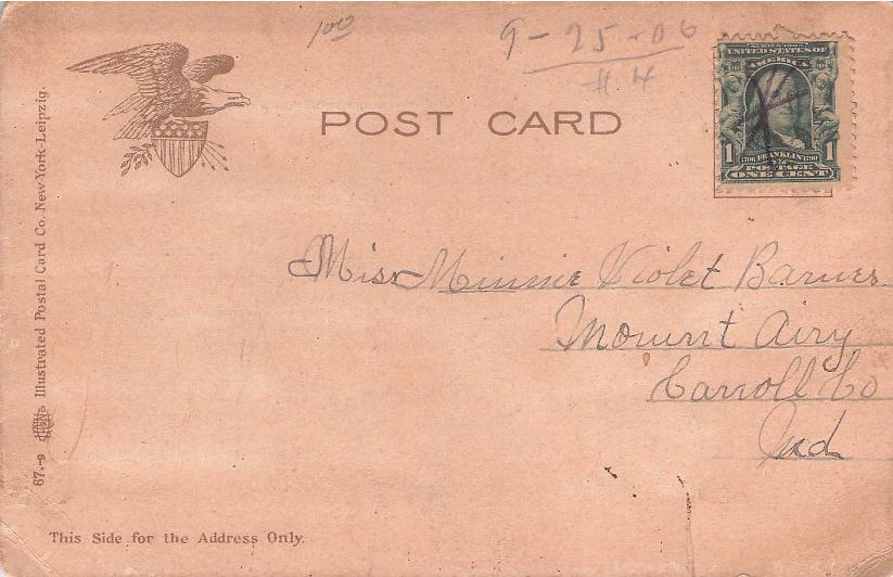 Mount Airy 1906 ms RFD rte. 4 marking on post card