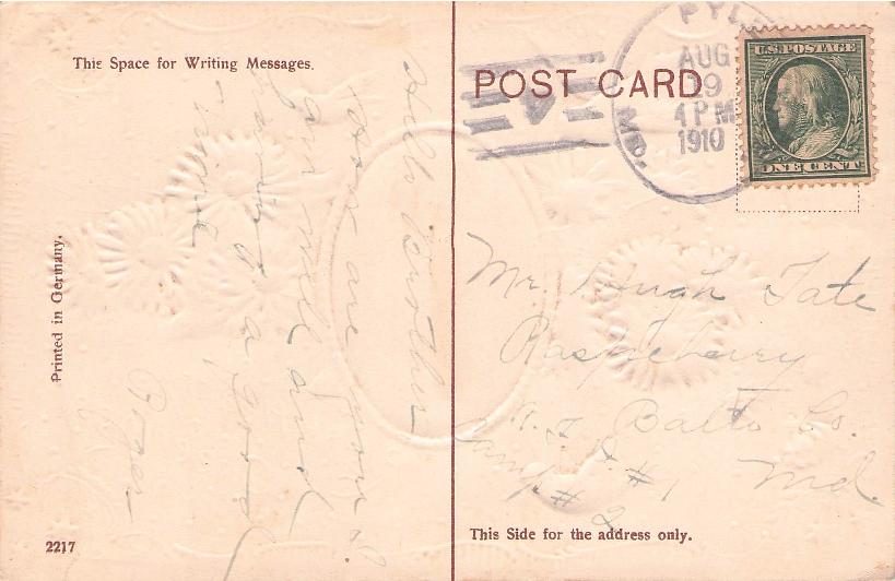 Pyle 1910 unusual Doane 4 applied upside down on post card